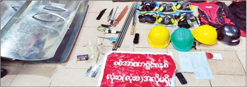 လုံခြုံရေးတပ်ဖွဲ့ဝင်များသည် ဆူပူအကြမ်းဖက်မှုလုပ်ရပ်များတွင် အသုံးပြုမည့် လက်နက်၊ ပစ္စည်း၊ ကိရိယာများအား ဆက်လက်ဖော်ထုတ်သိမ်းဆည်းရမိရေး ဆောင်ရွက်လျက်ရှိသည်။