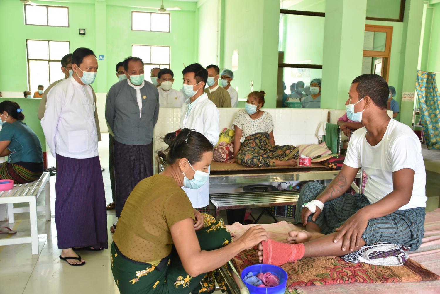 ကျန်းမာရေးနှင့်အားကစားဝန်ကြီးဌာန ပြည်ထောင်စုဝန်ကြီး ဒေါက်တာသက်ခိုင်ဝင်းသည် မေ ၁၅ ရက်တွင် မကွေးတိုင်းဒေသကြီးရှိ ပြည်သူ့ ဆေးရုံ၊ အောင်လံမြို့နှင့် ပဲခူးတိုင်းဒေသကြီးရှိ ပြည်သူ့ဆေးရုံကြီး၊ ပြည်မြို့တို့ကို ကွင်းဆင်း စစ်ဆေးသည်။