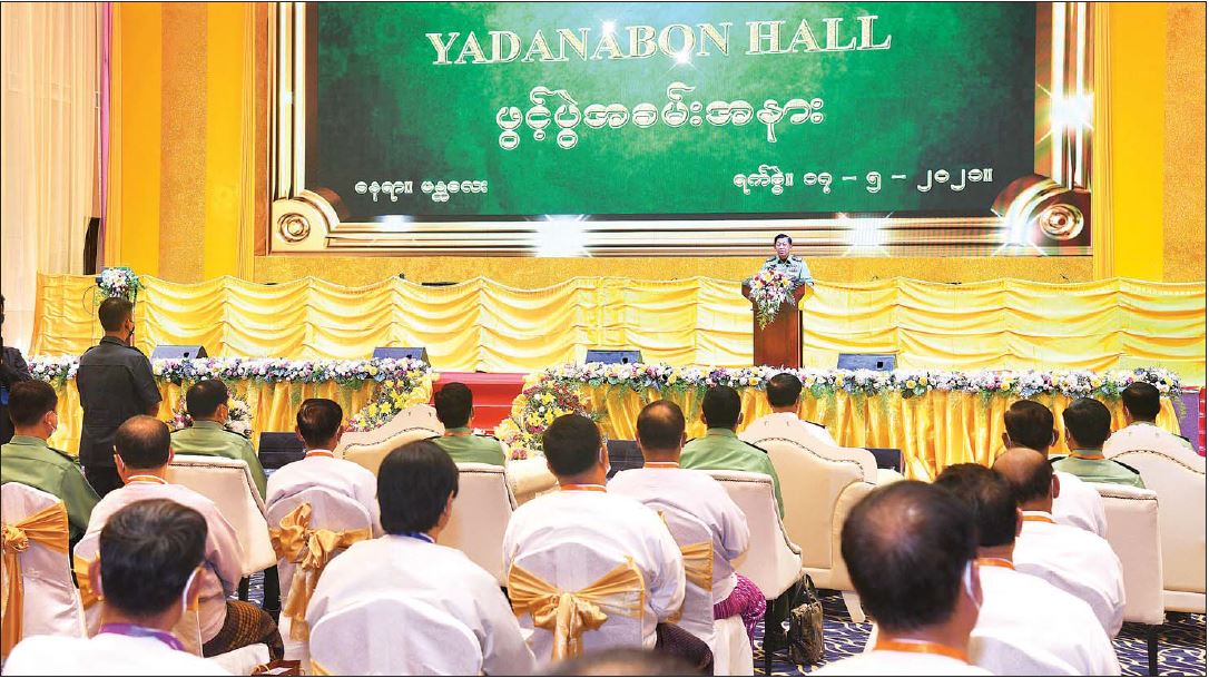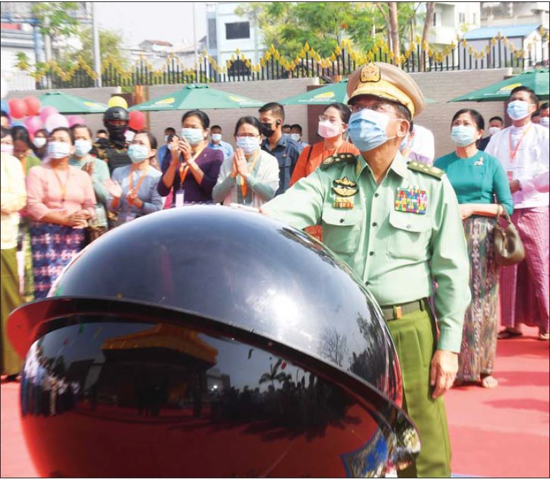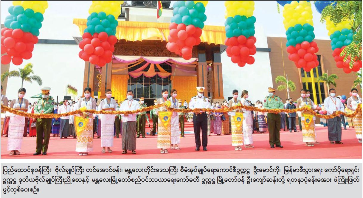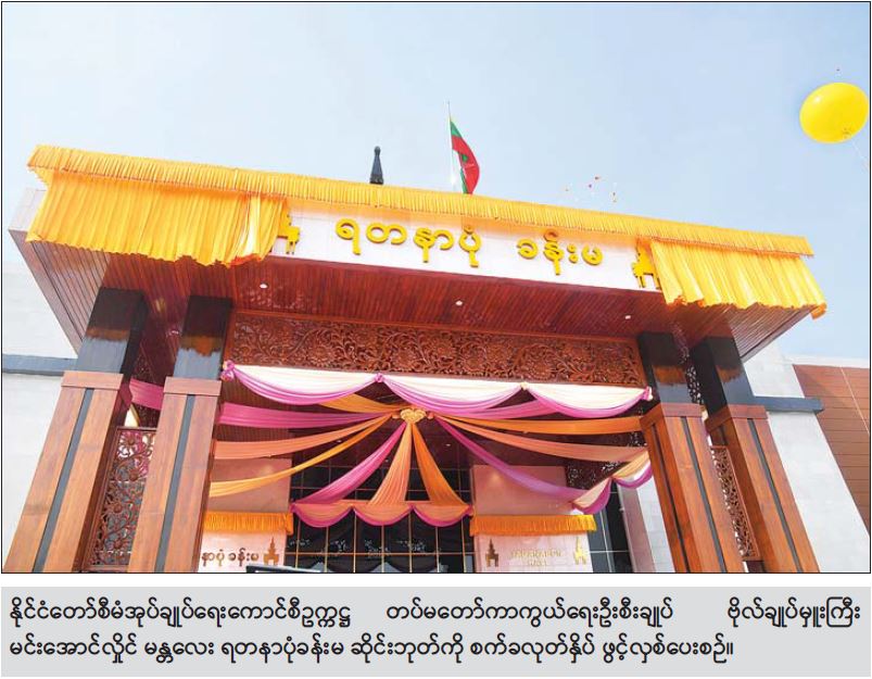 မန္တလေးတိုင်းဒေသကြီး မဟာအောင်မြေမြို့နယ်ရှိ ရတနာပုံခန်းမ ဖွင့်ပွဲအခမ်း အနားကို ယနေ့နံနက်ပိုင်းတွင် ကျင်းပပြုလုပ်ရာ နိုင်ငံတော်စီမံအုပ်ချုပ်ရေး ကောင်စီဥက္ကဋ္ဌ တပ်မတော်ကာကွယ်ရေးဦးစီးချုပ် ဗိုလ်ချုပ်မှူးကြီး မင်းအောင်လှိုင် တက်ရောက် ဖွင့်လှစ်ပေးသည်။