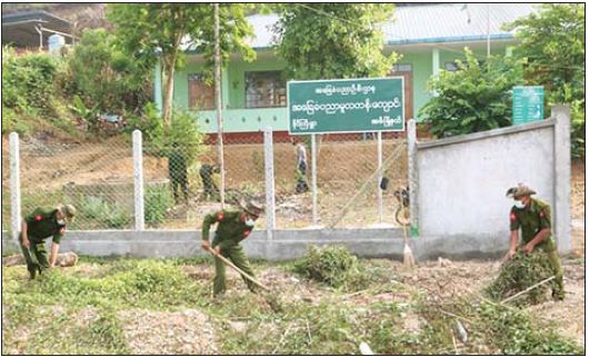 ၂၀၂၁-၂၀၂၂ ပညာသင်နှစ် ကျောင်းဖွင့်ရာသီတွင် ကျောင်းသား ကျောင်းသူများ အဆင်ပြေ ချောမွေ့စွာ ပညာသင်ကြားနိုင်ရေးနှင့် ကျောင်းပတ်ဝန်းကျင်သန့်ရှင်း သာယာလှပရေးအတွက် ပြည်နယ်နှင့် တိုင်းဒေသကြီးအသီးသီးရှိ အခြေခံပညာကျောင်းများ၌ တိုင်းစစ်ဌာန ချုပ်အလိုက် နယ်မြေခံတပ်မတော်သားများနှင့် မိသားစုများ၊ မြန်မာနိုင်ငံရဲတပ်ဖွဲ့ဝင်များ၊ မီးသတ်တပ်ဖွဲ့ ဝင်များနှင့် ဌာနဆိုင်ရာဝန်ထမ်းများက ကျောင်းသန့်ရှင်းရေးလုပ်ငန်းများ စုပေါင်းဆောင်ရွက် ပေးလျက်ရှိသည်။
