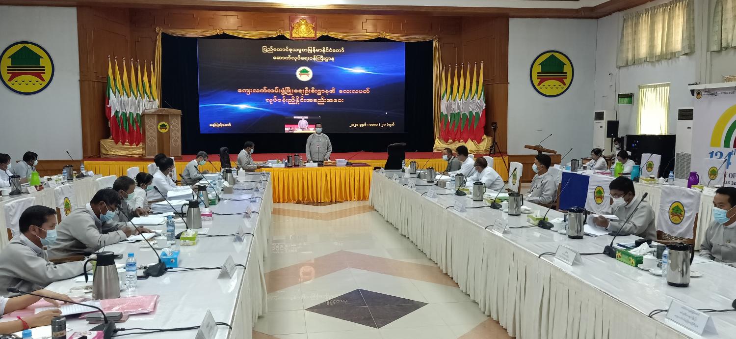 အစည်းအဝေးတွင် ပြည်ထောင်စုဝန်ကြီး က ၂၀၂၁ - ၂၀၂၂ ဘဏ္ဍာနှစ် အတွက် လုပ်ငန်း လျာထားချက်များကို  ယနေ့ အစည်းအဝေး တွင် တင်ပြပေးရန် လိုပါကြောင်း၊ မြန်မာနိုင်ငံ တွင် ကျေးရွာပေါင်း(၅၂၃၂၉)ရွာတည်ရှိပြီး ကျေးလက်လမ်းမိုင်အရှည် စုစုပေါင်း ငါးသောင်း ခြောက်ထောင်ကျော် ရှိပါကြောင်း၊ အဆိုပါ လမ်းများ အသုံးပြုနိုင်မှုမှာ ရာသီမရွေး အသုံးပြုနိုင်သည့် လမ်းမိုင်မှာ တစ်သောင်းနှစ်ထောင် ရှစ်ရာကျော်(၂၃ ရာခိုင်နှုန်း) ၊ ခြောက်သွေ့ရာသီ၌ အသုံးပြုနိုင်သော  လမ်းမိုင်မှာ  လေးသောင်း သုံးထောင်ကျော် (၇၇ ရာခိုင်နှုန်း) ရှိပါကြောင်း။ ကျေးလက် လမ်းများဖွံ့ဖြိုးတိုးတက်ရေး အတွက် ချမှတ်ထားသော ကျေးလက် လမ်းများဖွံ့ဖြိုးရေး ၂၀၃၀ ပြည့်နှစ် မဟာဗျူဟာ ရည် မှန်းချက်များနှင့်အညီ တစ်နိုင်ငံလုံး ၈၀ ရာခိုင်နှုန်းအထိ အသုံးပြုနိုင်ရန် အစီအစဉ်များ ရေးဆွဲ ထားပါကြောင်း။