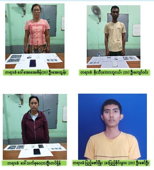 နေပြည်တော်၊ မေ - ၂၃ တိုင်းဒေသကြီးနှင့်ပြည်နယ်အချို့တွင် CDM လှုပ်ရှားမှုကို အခြေခံပြီး ရပ်ရွာ အေးချမ်းသာယာရေးနှင့် တရားဥပဒေစိုးမိုးမှုအား ပျက်ပြားစေရန် ရည်ရွယ်ချက်ဖြင့် အကြမ်းဖက်မှုများကို ဦးတည်စေသော ဆူပူ ဆန္ဒပြမှုများအား သွေးထိုးလှုံ့ဆော် လျက်ရှိသောကြောင့် အုပ်ချုပ်ရေးအဖွဲ့အစည်းများနှင့် လုံခြုံရေးအဖွဲ့အစည်း များက ဥပဒေနှင့်အညီ ပူးပေါင်းထိန်းသိမ်းဆောင်ရွက်လျက်ရှိသည်။ ထိုသို့ လုပ်ဆောင်လျက်ရှိရာ လူမှုကွန်ယက်စာမျက်နှာ၌ အများပြည်သူနှင့် အစိုးရဝန်ထမ်းများအား အထိတ် တလန့်ဖြစ်စေရန် သွေးထိုးလှုံ့ဆော်ခြင်း၊ အစိုးရ ဝန်ထမ်းများ CDM တွင် ပါဝင်လာအောင်စည်းရုံးလှုံ့ဆော်ခြင်းနှင့် ဆူပူဆန္ဒပြမှုများတွင် ကိုယ်တိုင်ပါဝင်ခြင်း၊ နိုင်ငံတော်နှင့်တပ်မတော်၏ ပုံရိပ်ကျဆင်းအောင်မဟုတ်မမှန် ရေးသားခြင်းများ ပြုလုပ်ခဲ့သည့် ပညာရေးဝန်ထမ်းများဖြစ်ကြသည့် မြိတ်မြို့၊ ကန်ဖျားရပ်ကွက်နေ ဒေါ်အေးအေးစိမ့်(ဘ)ဦးအေးထွန်း၊ မြစ်ငယ်ရပ်ကွက်၊ ဝေဘာဂီ လမ်းနေ စိုးသီ(ဘ) ဦးကျော်ဝင်း ၊ မြိတ်မြို့၊ စန္ဒဝတ်ကျေးရွာအုပ်စု၊ ရွှေပေးကျေးရွာနေ ဒေါ်သက်စုဝေ(ဘ) ဦးတင်ရှိန် ၊ ကော့သောင်းမြို့၊ အဏ္ဏဝါရပ်ကွက်၊ စံပယ်လမ်းနေ ပြည့်ဇော်ဖြိုး(ဘ) ဦးဇော်ဦး တို့အား မေ ၂၂ ရက်တွင် ၎င်းတို့၏ နေအိမ်များ၌ အသီးသီး ဖမ်းဆီး ထိန်းသိမ်းနိုင်ခဲ့ပြီး သက်ဆိုင်ရာ မြို့မရဲစခန်းများ၌ ရာဇသတ်ကြီးပုဒ်မ ၅၀၅-က ဖြင့် အမှုဖွင့် အရေးယူ ဆောင်ရွက်လျက်ရှိကြောင်း သတင်းရရှိသည်။ သတင်းစဉ်