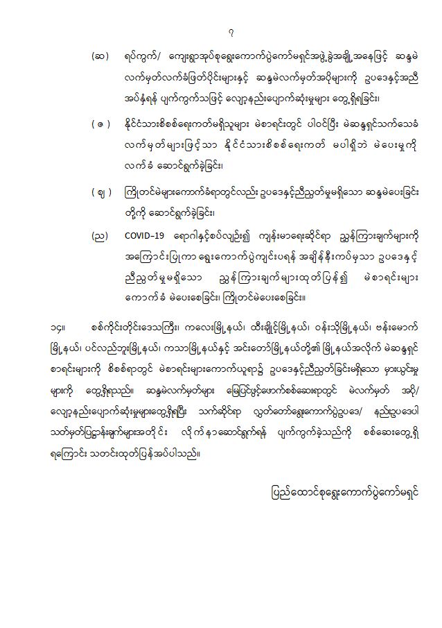 ဦးစီးဌာနနှင့် လုပ်ငန်းများ၏ ကြေညာချက်များ