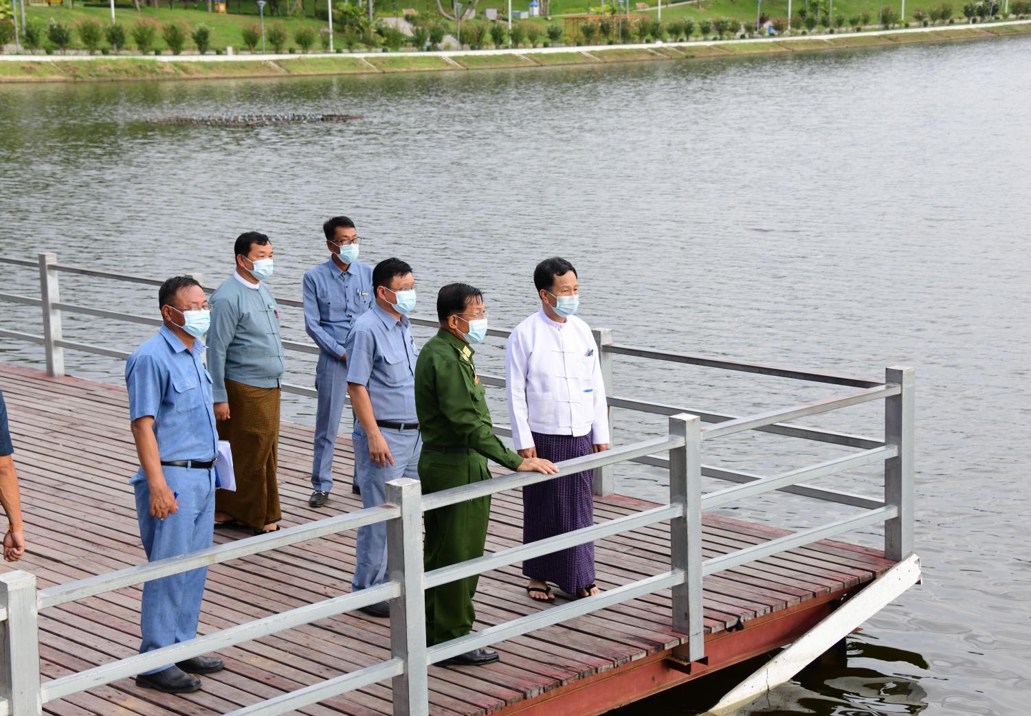 ထို့နောက် မင်္ဂလာကန်တော်ပတ်လမ်းရှိ အများပြည်သူအပန်းဖြေရန်နေရာ၊ အမှတ် တရသော့ချိတ်ဆွဲရန် နေရာ၊ မင်္ဂလာကန်တော်ရှိရေပေါ်ရှုရပ်စင်နှင့် အားကစား လေ့ကျင့်ခန်းလုပ်ဆောင်နိုင်သည့် နေရာတို့ကို လှည့်လည်ကြည့်ရှုစစ်ဆေးပြီး ပြည်ထောင်စုနယ်မြေ နေပြည်တော်သည် နိုင်ငံတော်၏ မြို့တော်ဖြစ်ပြီး အစိုးရရုံး စိုက်ရာ မြို့တော်ဖြစ်သည်နှင့် အညီ သန့်ရှင်းသာယာသပ်ရပ်မှုတွင် စံပြဖြစ်နေရမည် ဖြစ်ကြောင်း၊ အများပြည်သူအပန်းဖြေ သည့်နေရာဖြစ်သည့်အတွက် ပြည်သူများ စိတ်လက်အေးချမ်းသာယာစွာဖြင့် အနားယူ အပန်းဖြေနိုင်ရေး စီစဉ်ဆောင်ရွက်ပေးရန် လိုအပ်မည်ဖြစ်ကြောင်း၊ ထို့ပြင် မကြာမီအချိန် အတွင်း မိုးရာသီကာလသို့ ရောက်ရှိတော့မည်ဖြစ်သဖြင့် မြို့တော်အတွင်း လမ်းများ၊ လူနေ ရပ်ကွက်များအတွင်း ရေစီးရေလာကောင်းမွန်စေရေးနှင့် အမှိုက်များကင်းစင်ကာ သန့်ရှင်း သာယာမှုရှိစေရေး ယခုကတည်းက ကြိုတင်ပြင်ဆင်ဆောင်ရွက်ကြရန် လိုအပ်မည်ဖြစ်ကြောင်း ပြောကြားပြီး အခြားလိုအပ်သည့် အခြေအနေများကို တာဝန်ရှိသူများအား မှာကြားကာ လိုအပ်သည်များ ပေါင်းစပ်ညှိနှိုင်း ဆောင်ရွက်ပေးသည်။