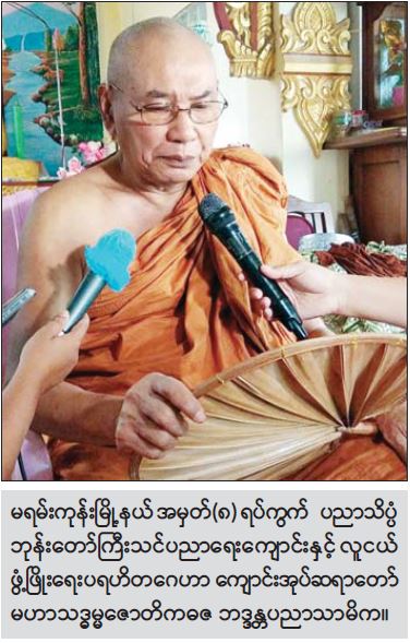 “ဘုန်းတော်ကြီးသင်ပညာရေးကျောင်းတွေဟာ ကိုယ့်အားကိုယ်ကိုး၊ ကိုယ်ထူ ကိုယ်ထ၊ ကိုယ့်ကျောင်းကိုယ်ဆောက်၊ ကိုယ့်စာ ကိုယ်သင် စနစ်နဲ့သွားတာဖြစ်ပါတယ်။ စေတနာရှင် အလှူရှင် အနီးအဝေးတွေရဲ့ ပံ့ပိုးမှု၊ နိုင်ငံတော်က ကူညီထောက်ပံ့မှုတွေကြောင့် ဒီနေ့ ယခင် ထက်စာရင် ပိုမို ပြည့်စုံသင့်သလောက် ပြည့်စုံနေပါပြီ။ ဘုန်းတော်ကြီး သင်ပညာရေးကျောင်း များရဲ့ အဓိက လိုအပ်ချက်က နိုင်ငံတော်အစိုးရက ဆက်လက် အားပေးဖို့ဖြစ်ပါတယ်။ အစိုးရ အခြေခံကျောင်းများနည်းတူ ပြဌာန်းစာအုပ်များ၊ စာရေးကိရိယာများ၊ သင်ထောက်ကူ ပစ္စည်းများ၊ ကိုဗစ်-၁၉ ရောဂါနဲ့ပတ်သက်တဲ့ ကျန်းမာရေးအထောက်အကူရတဲ့ပစ္စည်းများ၊ ဒါတွေ လည်းလိုအပ်ပါတယ်။ ဒီရပ်ကွက် အနီးနားမှာရှိတဲ့ အကြောင်းအမျိုးမျိုးကြောင့် ပညာမသင် ကြားနိုင်တဲ့ ကလေးတွေကိုလည်း ပြုစုစောင့်ရှောက်ပေးနေ ပါတယ်။ ဆရာ ဆရာမ ၁၀ ဦး ရှိပါတယ်။ ဘုန်းတော်ကြီးသင်ပညာရေးကျောင်းတွေက ပညာရေးကို တကယ်မြှင့်တင်ပေးနေပါတယ်။ ကလေးတွေကို ယဉ်ကျေးလိမ္မာအောင် သင်ကြားပေးနေပါတယ်။ တိုင်းပြည်အတွက် တစ်ဖက်တစ်လမ်းက စောင့်ရှောက်ပေးနေပါတယ်။ ရှေးအစဉ် အလာသမိုင်းကြောင်းကို ဆက်လက်ထိန်းသိမ်းနေပါတယ်။ ကောင်းမှု မကောင်းမှု၊ ကုသိုလ် အကုသိုလ် သိအောင် ကလေးဘဝကစပြီး လူကြီးဘဝရောက်တဲ့ထိအောင် အလင်းဓာတ်တွေ ပေးနေပါတယ်။ တိုင်းပြည်ရဲ့ သားကောင်း သမီးမွန်များ မွေးထုတ် ပေးနေပါတယ်။ ပညာတတ် လူမျိုးတွေ တိုးပွားပေးနေပါတယ်။ ပညာရေးလုပ်ငန်းတွေနဲ့ ဆက်လက် ကူညီပေး နေပါတယ်" ဟု မိန့်ကြား သည်။