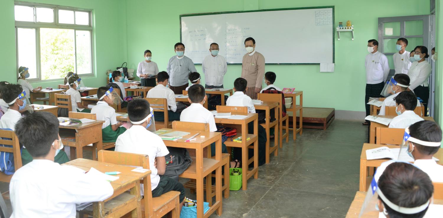 ပြည်ထောင်စုဝန်ကြီး ဒေါက်တာညွန့်ဖေ အခြေခံပညာကျောင်းများ ဖွင့်လှစ်မှု လှည့်လည်ကြည့်ရှုအားပေး