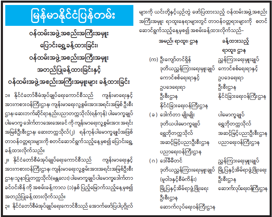 ဝန်ထမ်းအဖွဲ့အစည်း အကြီးအမှူးများ အတည်ပြုခန့်ထားခြင်းနှင့် ဝန်ထမ်းအဖွဲ့အစည်းအကြီးအမှူးများ ခန့်ထားခြင်း