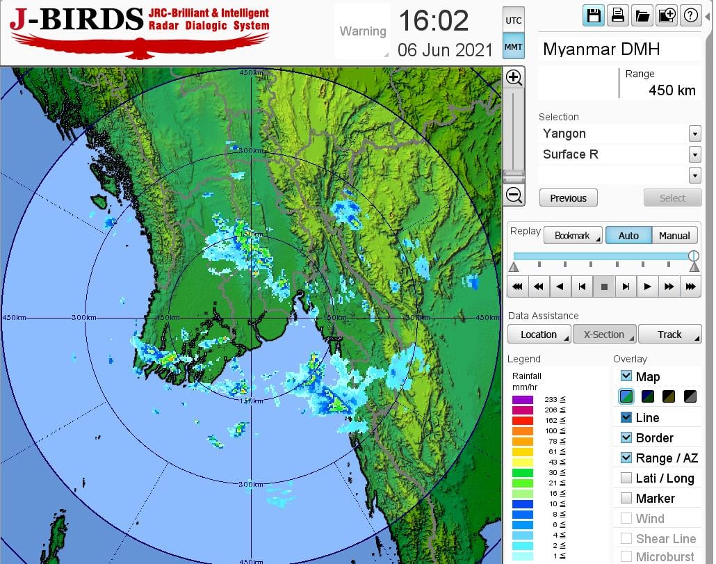 ဘင်္ဂလားပင်လယ်အော်အခြေအနေ။ ကပ္ပလီပင်လယ်ပြင်၊ ဘင်္ဂလားပင်လယ်အော်တောင်ပိုင်း၊ အရှေ့အလယ်ပိုင်းနှင့်အရှေ့မြောက်ပိုင်းတို့တွင် မုတ်သုံလေ အားအသင့်အတင့်ရှိနေပြီး၊ ကျန်ဘင်္ဂလားပင်လယ်အော်တွင် တိမ်အနည်း ငယ်မှ တိမ်အသင့်အတင့် ဖြစ်ထွန်းနေပါသည်။