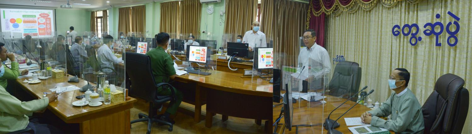 ဆက်လက်၍ ပတ်ဝန်းကျင်ထိန်းသိမ်းရေးဦးစီးဌာန ညွှန်ကြားရေးမှူးချုပ်၊ သစ်တောဦးစီးဌာန၊ ဒုတိယညွှန်ကြားရေးမှူးချုပ်နှင့် တာဝန်ရှိသူများက လက်ရှိဆောင်ရွက်နေသော လုပ်ငန်း များနှင့် ရှေ့ဆက်ဆောင်ရွက်မည့် အစီအစဉ်များကို ကဏ္ဍအလိုက် ရှင်းလင်းတင်ပြရာ ပြည်ထောင်စုဝန်ကြီးနှင့် ဧရာဝတီတိုင်းဒေသကြီး စီမံအုပ်ချုပ်ရေးကောင်စီဥက္ကဋ္ဌတို့က လိုအပ်သည်များ ပေါင်းစပ် ညှိနှိုင်း ဆောင်ရွက်ပေးသည်။