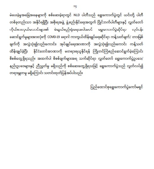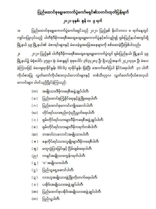 ပြည်ထောင်စုရွေးကောက်ပွဲကော်မရှင်၏ သတင်းထုတ်ပြန်ချက် ၂၀၂၁ ခုနှစ်၊ ဇွန်လ ၉ ရက်
