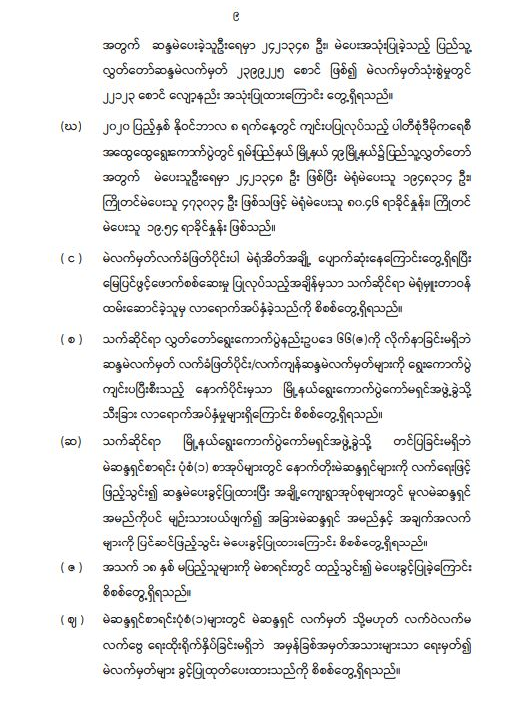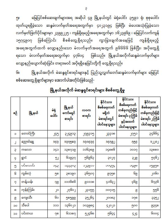 ရန်ကုန်မြို့နှင့် မန္တလေးမြို့အတွက် ရည်ညွှန်းလက်ကားဈေးနှုန်းများနှင့် ပြည်ထောင်စုနယ်မြေ နေပြည်တော်၊ တိုင်းဒေသကြီး/ပြည်နယ် မြို့တော်များအတွက် ရည်ညွှန်းလက်လီဈေးနှုန်းများ