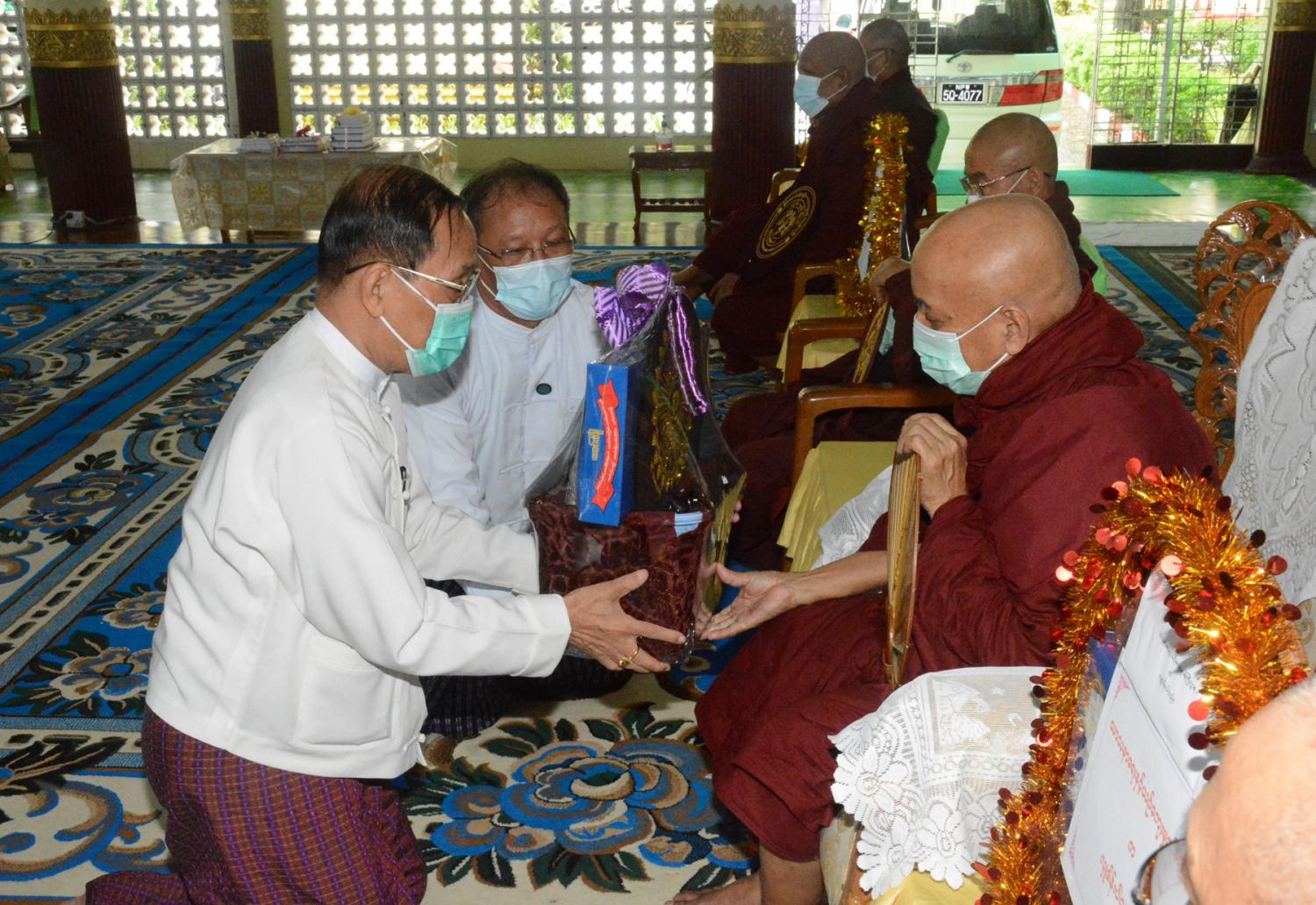 ထို့နောက် ပြည်ထောင်စုဝန်ကြီးနှင့်တာဝန်ရှိသူများက ပါမောက္ခချုပ်ဆရာတော်နှင့် သင်ကြား/စီမံ ဆရာတော်များထံ လှူဖွယ်ဝတ္ထုပစ္စည်းများဆက်ကပ်လှူဒါန်း၍ ပါမောက္ခ ချုပ်ဆရာတော် ဒေါက်တာ ဘဒ္ဒန္တကုမာရ(အဂ္ဂမဟာပဏ္ဍိတ၊ အဂ္ဂမဟာသဒ္ဓမ္မ ဇောတိကဓဇ)က အနုမောဒနာနှင့် ရေစက်သွန်း တရားဟောကြားချီးမြှင့်တော်မူခဲ့ကြောင်း သိရသည်။