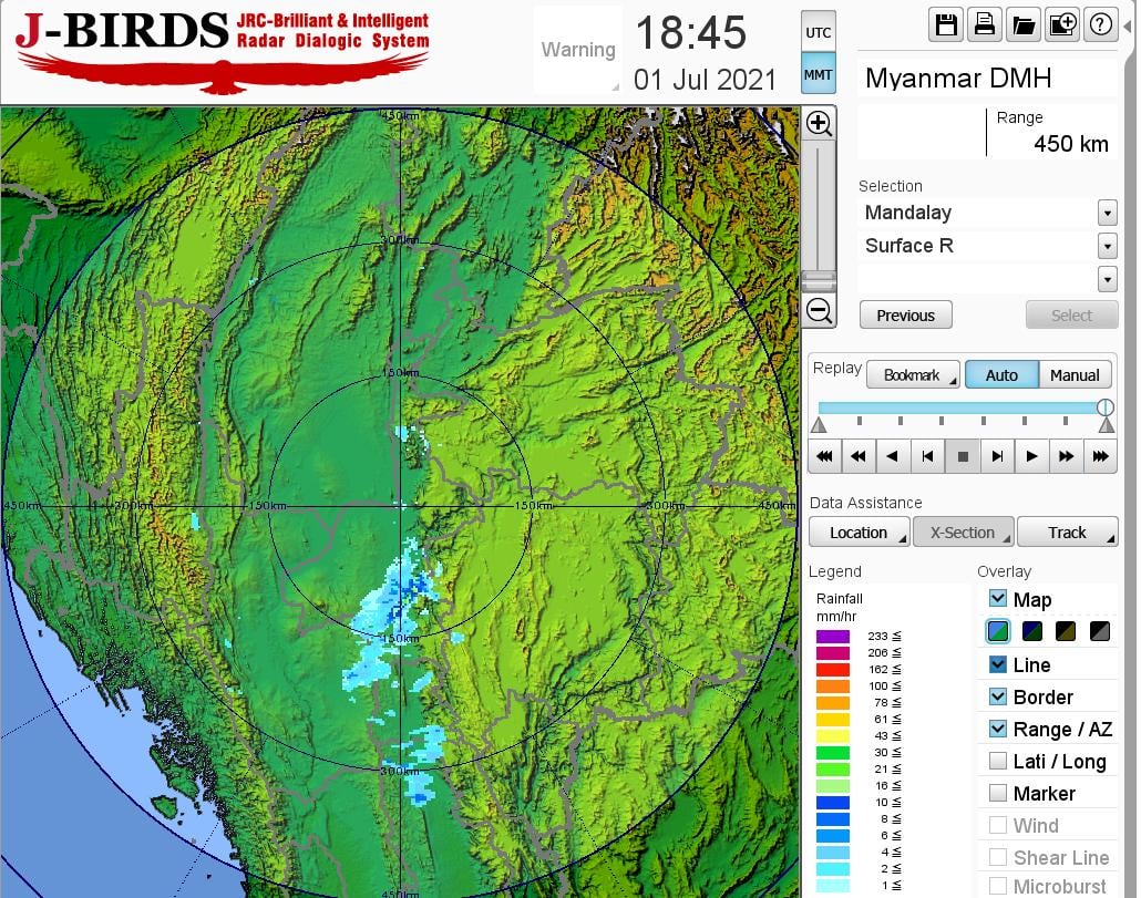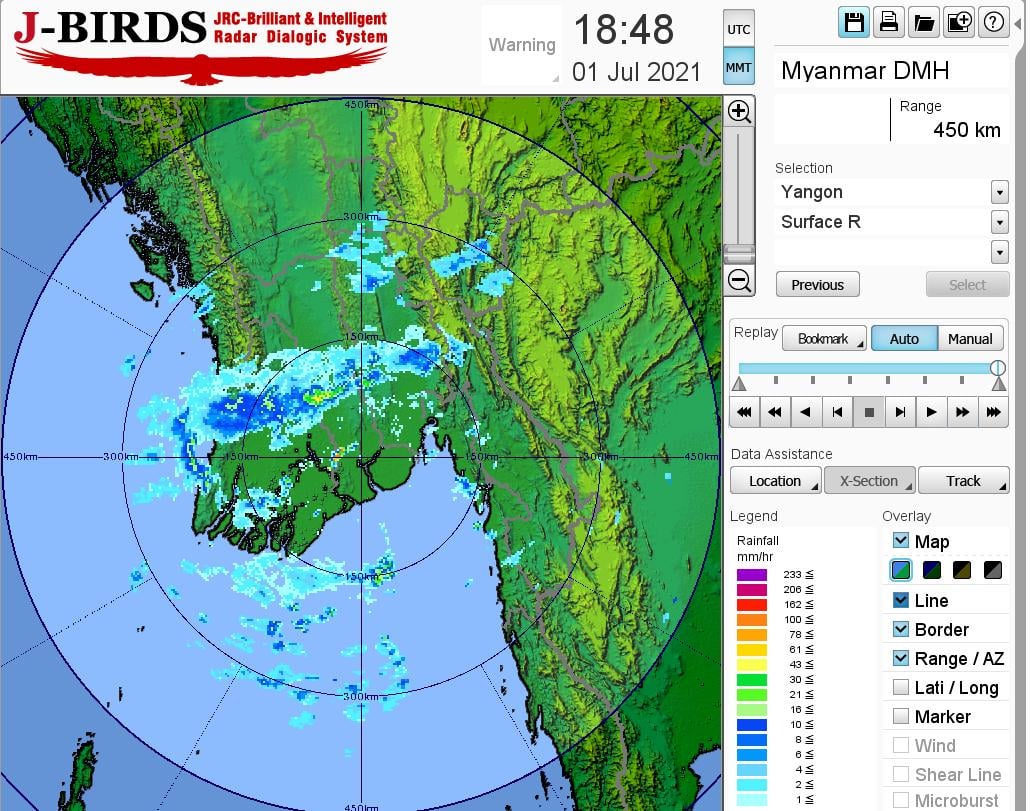 မနက်ဖြန် မွန်းတည့်ချိန်အထိ ခန့်မှန်းချက်။ စစ်ကိုင်းတိုင်းဒေသကြီးအောက်ပိုင်း၊ မကွေးတိုင်း ဒေသကြီးနှင့် ရှမ်းပြည်နယ်(မြောက်ပိုင်း)တို့တွင် နေရာကျဲကျဲ၊ စစ်ကိုင်းတိုင်းဒေသကြီး အထက်ပိုင်း၊ မန္တလေးတိုင်းဒေသကြီး၊ ကချင်ပြည်နယ်နှင့် ချင်းပြည်နယ်တို့တွင် နေရာစိပ်စိပ်နှင့် ကျန်တိုင်းဒေသကြီးနှင့် ပြည်နယ်တို့တွင် နေရာအနှံ့အပြား မိုးထစ်ချုန်းရွာပြီး၊ ရခိုင်ပြည်နယ် တွင် ဒေသအလိုက်နှင့် စစ်ကိုင်းတိုင်းဒေသကြီး အထက်ပိုင်း၊ ဧရာဝတီတိုင်းဒေသကြီး၊ ကချင်ပြည်နယ်နှင့် မွန်ပြည်နယ်တို့တွင် နေရာကွက်၍ မိုးကြီးနိုင်ပါသည်။ ရွာရန်ရာနှုန်းပြည့် ဖြစ်ပါသည်။