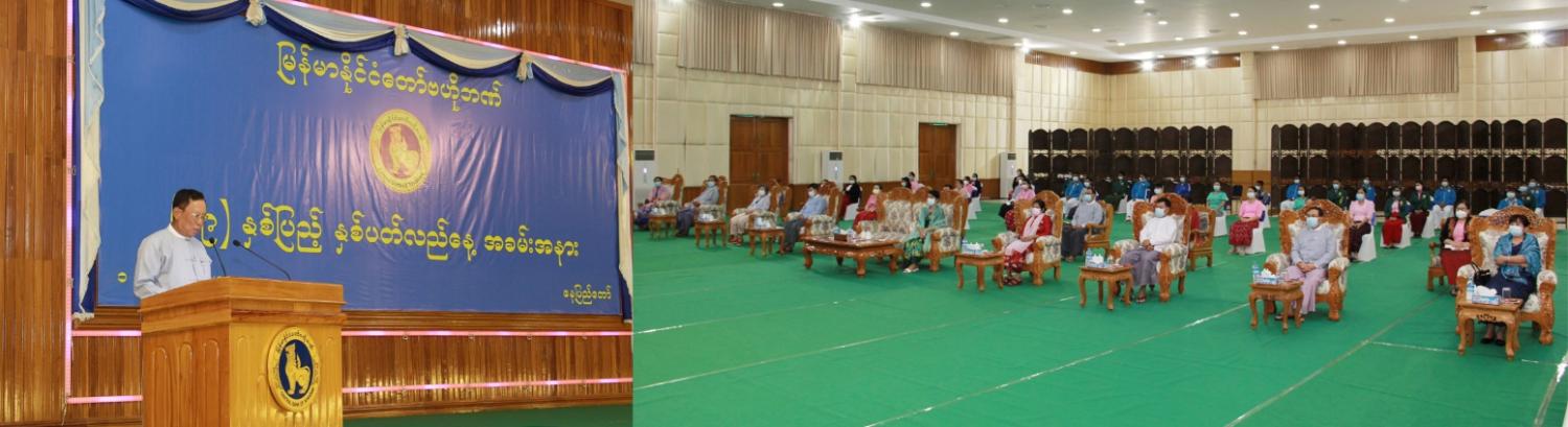 မြန်မာနိုင်ငံတော်ဗဟိုဘဏ်၏ (၆၉)နှစ်ပြည့် နှစ်ပတ်လည်နေ့ အထိမ်းအမှတ်အဖြစ် နေ့ဆွမ်းဆက်ကပ်လှူဒါန်းခြင်းနှင့် ထူးချွန်ဆုများ ချီးမြှင့်ခြင်း အခမ်းအနားကို မြန်မာနိုင်ငံတော်ဗဟို ဘဏ်(နေပြည်တော်) ဇမ္ဗူသီရိခန်းမတွင် ကျန်းမာရေးနှင့် အားကစားဝန်ကြီးဌာန၏ လမ်းညွှန်ချက်များနှင့်အညီ ကျင်းပသည်။