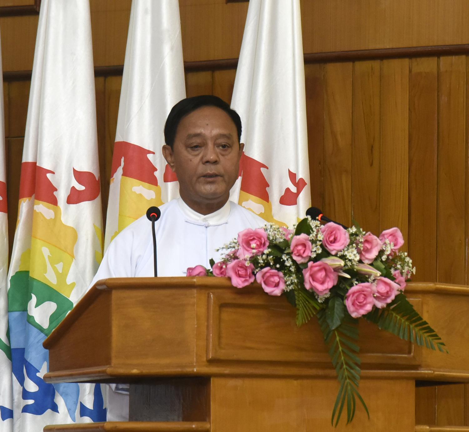 အခမ်းအနားတွင် ပြည်ထောင်စုဝန်ကြီး ဦးလှမိုး က နိုင်ငံတော်က ချမှတ်အကောင်အထည်ဖော် ဆောင်ရွက်လျက်ရှိသည့် စီးပွားရေးဦးတည်ချက်၌ ပါဝင်သည့် “စိုက်ပျိုးရေးနှင့် မွေးမြူရေးကို အခြေခံသည့် ကုန်ထုတ်လုပ်မှုကို ခေတ်မီနည်းစနစ်များဖြင့် ပိုမိုဖွံ့ဖြိုးတိုးတက်အောင် ဆောင်ရွက်ပြီး အခြားစီးပွားရေးကဏ္ဍများကိုလည်း ဘက်စုံဖွံ့ဖြိုးတိုးတက်အောင် တည်ဆောက်ရေး” ဆိုသည့် ဦးတည်ချက်နှင့်အညီ သမဝါယမအသင်းများက ကြိုးပမ်းဆောင်ရွက်လျက်ရှိရာ စိုက်ပျိုးရေး၊ မွေးမြူရေးသမဝါယမအသင်းများ အနေဖြင့် ထုတ်ကုန်ပစ္စည်းများကို ဈေးကွက်ဝယ်လိုအားတစ်ရပ် ဖြစ်ပေါ်လာစေရန် ကြိုးပမ်း ဆောင်ရွက်သွားကြရမည် ဖြစ်ပါကြောင်း၊ သမဝါယမအသင်းများ၏ လယ်ယာမြေ အဆင့်မြှင့်တင်ခြင်းအတွက်လည်း ပံ့ပိုးငွေ ငွေကျပ်သန်း(၂၆၃၃၀ ဒသမ ၅၇၃) ဖြင့် လယ်မြေ ဧက(၈၉၆၃၃ ဒသမ ၆၀) ဧကကို စိုက်ပျိုးရာသီအချိန်မီ ပြုပြင်ဆောင်ရွက်ပေးနိုင်ခဲ့သည်ကိုလည်း တွေ့ရပါကြောင်း၊ သွင်းအားစုပံ့ပိုးခြင်းအနေဖြင့်လည်း မြေဩဇာ (၁၄၃၆၈၅) အိတ်၊ မျိုး(၅၆၅)အိတ်၊ ပိုးသတ်ဆေး (၂၉၅၁၂)အိတ်၊ တန်ဘိုးအားဖြင့်( ၄၇၀၈ဒသမ ၆၀၃ ) သန်းကို ပံ့ပိုးပေးနိုင်ခဲ့ပါကြောင်း၊ လယ်ယာအထောက်အကူပြု ဝန်ဆောင်မှုသမဝါယမအသင်း (၁၆၂) သင်းမှလည်း ရိတ်သိမ်းခြွေလှေ့ စက်(၁၁၄)စီး၊ ထွန်စက်ကြီး(၄၅၂)စီး၊ အခြားစက် ကိရိယာ(၆၄)စီးတို့ဖြင့် စိုက်ပျိုးထုတ်လုပ်မှုလုပ်ငန်းများအတွက် လယ်ယာဝန်ဆောင်မှုများ ပေးနိုင်ခဲ့ပါကြောင်း။