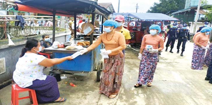 အလားတူ ဧရာဝတီတိုင်းဒေသကြီး၊ ပုသိမ်ခရိုင်၊ ပုသိမ်မြို့၊ ကျုံပျော်မြို့၊ သားပေါင်းမြို့၊ ဟင်္သာတခရိုင်၊ ဟင်္သာတမြို့၊ မအူပင်ခရိုင်၊ မအူပင်မြို့နှင့် ပန်းတနော် မြို့များရှိ လူစည်ကားရာ ဘုရားစေတီများ၊ ဈေးများ၊ လမ်းများ၌ ဒေသခံပြည်သူများအား အနောက်တောင်တိုင်း စစ်ဌာနချုပ်၊ တပ်နယ်အသီးသီးမှ နယ်မြေခံ တပ်မတော်သားများ၊ ဌာနဆိုင်ရာ ဝန်ထမ်းများနှင့် ကျန်းမာရေးဝန်ထမ်းများက Mask ၂၀၁၀၀ ခုကို ဒေသခံပြည်သူများ၏ လက်ဝယ်အရောက် အခမဲ့သွားရောက်ပေးဝေ လှူဒါန်းခဲ့ကြကြောင်း သတင်းရရှိသည်။