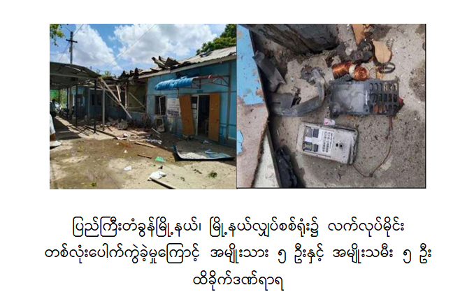 ထိုသို့အကြမ်းဖက်ဆောင်ရွက်လျက်ရှိရာ ယနေ့နံနက် ၉ နာရီ ၄၀ မိနစ်အချိန်တွင် ပြည်ကြီးတံခွန်မြို့နယ်၊ (ဆ)ရပ်ကွက်၊ ၁၂၈ လမ်း၊ ၆၄ လမ်းနှင့် ၆၅ လမ်းအကြားရှိ မြို့နယ်လျှပ်စစ်ရုံး၌ ပြည်သူလူထု ၃၀ ဦးခန့် မီတာဆောင်ရန်စောင့်ဆိုင်းနေစဉ် ပေါက်ကွဲမှုဖြစ်ပွားခဲ့၍ ထိခိုက်ဒဏ်ရာများ ရရှိခဲ့ကြောင်း သတင်းအရ လုံခြုံရေးတပ်ဖွဲ့ဝင်များက သွားရောက်စစ်ဆေးခဲ့ရာ မီတာဆောင်သည့် ကောင်တာအနီး ရပ်တန့်ထားသည့် Yinxing အမျိုးအစားဆိုင်ကယ်အတွင်းမှ လက်လုပ်မိုင်း ၁ လုံးပေါက်ကွဲခဲ့ခြင်းဖြစ်ကြောင်း စစ်ဆေးတွေ့ ရှိရသည်။