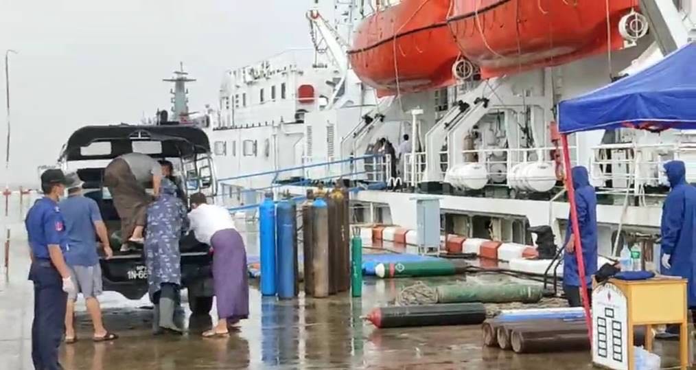 ထိုသို့ ထုတ်လုပ်ဖြန့်ဝေလှူဒါန်းလျက်ရှိရာ တပ်မတော်(ရေ)မှ ပင်လယ်သွား ဆေးရုံရေယာဉ်(သံလွင်)ပေါ်၌ တပ်ဆင်ထားရှိသော oxygen Plant (Oxymet) မှ အောက်ဆီဂျင်များဖြည့်သွင်းပြီး ရန်ကုန်တိုင်းဒေသကြီးအတွင်းရှိ ပြည်သူ့ ဆေးရုံများနှင့် လူမှုရေးအဖွဲ့အစည်းများသို့ ပို့ဆောင်ဖြန့်ဝေလှူဒါန်း ပေးခြင်း များလည်း ဆောင်ရွက်လျက်ရှိရာ ဇူလိုင် ၁၆ ရက်မှ ယနေ့အထိ ၄၀ လီတာဆံ့ အောက်ဆီဂျင်အိုး ၁၂၆ လုံးနှင့် ၁၅ လီတာဆံ့အောက်ဆီဂျင်အိုး ၄ လုံးတို့အား ဖြန့်ဝေလှူဒါန်းပေးနိုင်ခဲ့သည်။