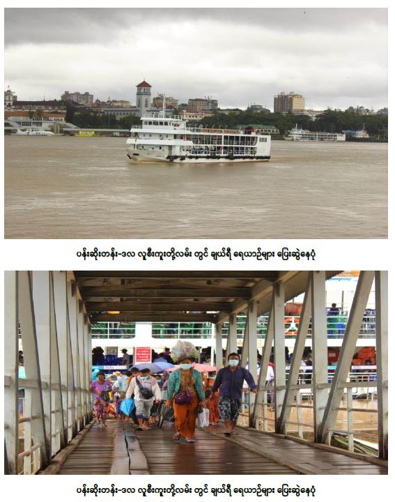 ရေယာဉ်များ ပြေးဆွဲပေးမှုအနေဖြင့် ပြည်တွင်းရေကြောင်းပို့ဆောင်ရေးသည် ရန်ကုန်-ဒလ၊ ဝါးတန်း-ဒလ၊ လပ္ပတ္တလုပ်-ရေပေါ်ကြီး၊ ကျုံသွယ်- ဇီးဖြူချောင်း ခရီးစဉ်များကို ပုံမှန်ပြေးဆွဲ ပေးလျက်ရှိပြီး မန္တလေး-ဗန်းမော်နှင့် ရခိုင်ပြည်နယ်အတွင်း ခရီးစဉ်များကို ပုံမှန်ပြေးဆွဲပေး လျက်ရှိသည်။ ဇူလိုင် ၁၇ ရက်မှ ယနေ့အထိ ရေယာဉ်ခရီးစဉ်အသီးသီးအတွက် (၄၃၉)ခေါက် ပြေးဆွဲခဲ့ပြီး၊ ခရီးသည် (၄၆၇၉၉) ဦး၊ ကုန်စည် (၂၅၈၁) တန်ကို ပို့ဆောင်ပေးခဲ့သည်။