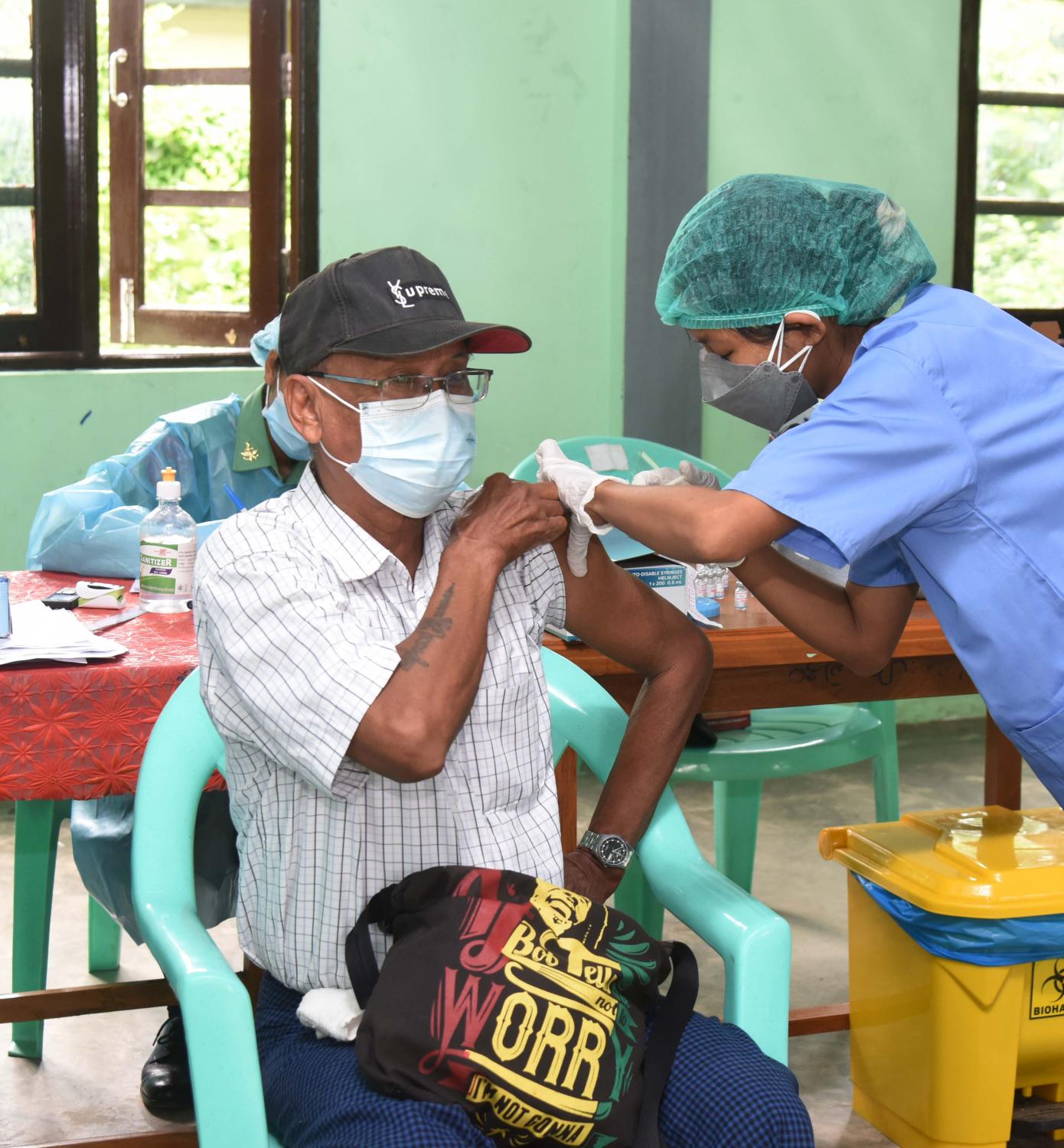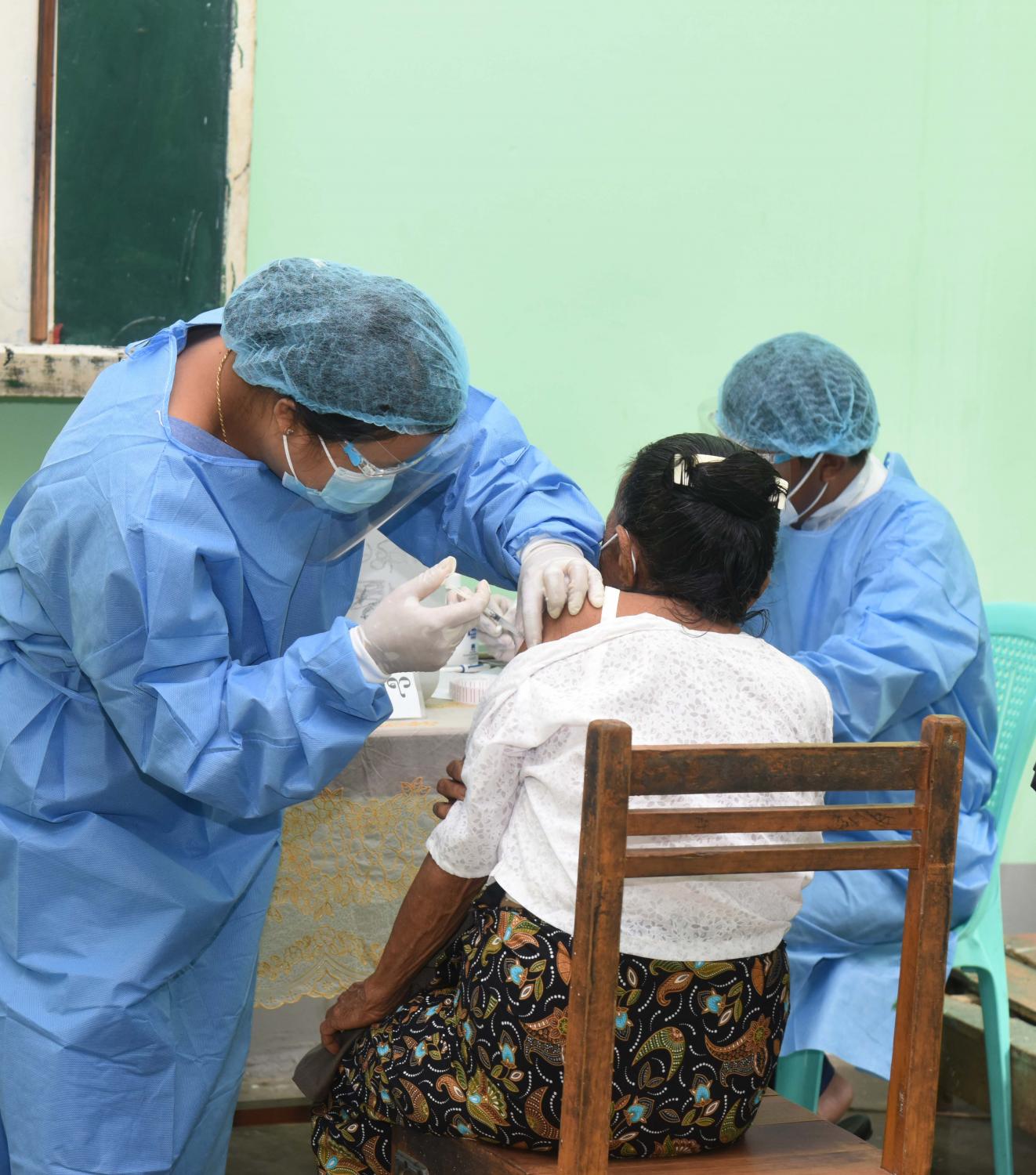 ကိုဗစ် - ၁၉ ကာကွယ်ဆေး ထိုးနှံခြင်းမပြုမီ ကျန်းမာရေးဝန်ထမ်းများက ကိုယ်အပူချိန် တိုင်းတာပေးခြင်း၊ သွေးပေါင်ချိန်တိုင်းတာပေးခြင်း၊ သွေးအတွင်း အောက်ဆီဂျင် ပါဝင်မှုပမာဏ တိုင်းတာပေးခြင်းတို့ကို ဆောင်ရွက်ပေးပြီး ပုံမှန်အနေအထားရှိမှသာ ကာကွယ်ဆေးထိုးနှံပေးကြောင်း သိရှိရသည်။