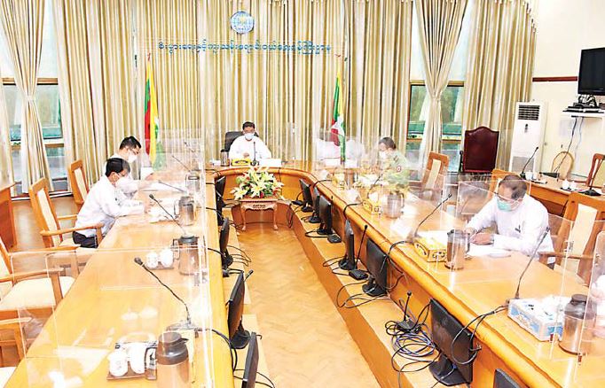 ကုန်စည်ကူးသန်းရေးတွင် ကိုဗစ်-၁၉ ရောဂါ ပြန့်ပွားမှုထိန်းချုပ်ရေးလုပ်ငန်းကော်မတီ၏ ဆဋ္ဌမ အကြိမ်မြောက် ကိုဗစ်-၁၉ ကာကွယ်ကုသရေး အခြေခံဆေးဝါးနှင့် ဆေးပစ္စည်းများ ပြည်ပမှ တင်သွင်းခြင်းဆိုင်ရာ လုပ်ငန်းညှိနှိုင်းအစည်းအဝေးကို ယနေ့နံနက် ၁၀ နာရီတွင် စီးပွားရေးနှင့် ကူးသန်းရောင်းဝယ်ရေးဝန်ကြီးဌာန အစည်းအဝေး ခန်းမ၌ ကျင်းပရာ စီးပွားရေးနှင့်ကူးသန်းရောင်းဝယ်ရေးဝန်ကြီးဌာန ဒုတိယဝန်ကြီး ဦးညွန့်အောင် တက်ရောက်အမှာစကား ပြောကြားသည်။