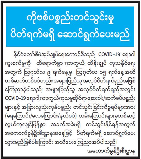 ကိုဗစ်ပစ္စည်းတင်သွင်းမှု ပိတ်ရက်မရှိ ဆောင်ရွက်ပေးမည်