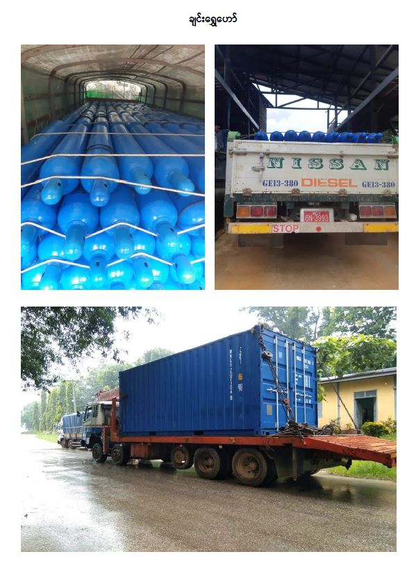 ၂၀၂၁ ခုနှစ် ဇူလိုင်လမှ သြဂုတ်(၁၁)ရက်အထိ ပြည်ပမှတင်သွင်းလာသည့် အောက်ဆီဂျင် အရည် (Bowser) ယာဉ် စုစုပေါင်း (၆၃) စီးမှာ ရန်ကုန်မြို့သို့ (၄၆) စီး ၊ မန္တလေးမြို့သို့ (၁၁)စီး ၊ ပဲခူးမြို့သို့ (၂)စီး ၊ မော်လမြိုင်မြို့ သို့ (၃)စီး ၊ သထုံမြို့ သို့ (၁)စီး ဖြစ်ပြီး Oxygen Plant စုစုပေါင်း (၂၄) ခုမှာ ရန်ကုန်မြို့သို့ (၄ ) ခု၊ လားရှိုး (၄) ခု၊ ပဲခူးမြို့သို့ (၄) ခု၊ ပခုက္ကူ (၂) ခု၊ မန္တလေးမြို့၊ တောင်ကြီး၊ သံဖြူဇရပ်၊ မကွေး၊ ဘားအံ၊ ထားဝယ်၊ ဝါးခယ်မ၊ မြစ်သား၊ ကျောက်ပန်းတောင်းမြို့၊ မော်လမြိုင်မြို့များသို့ (၁) ခုစီ ဖြစ်ကြောင်း သိရသည်။