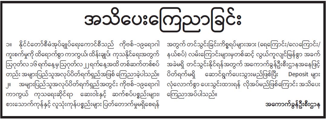 နိုင်ငံတော်အစိုးရ၏ ကြေညာချက်များ