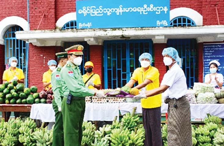 ကိုဗစ်- ၁၉ ရောဂါ ကာကွယ်၊ ထိန်းချုပ်၊ ကုသရေးလုပ်ငန်းများကို အရှိန်အဟုန်မြှင့် ဆောင်ရွက် လျက်ရှိရာ သွားလာမှုကန့်သတ်ချက်များကြောင့် စစ်မှုထမ်းဟောင်းအဖွဲ့ဝင်များ၊ မြန်မာနိုင်ငံ ရဲတပ်ဖွဲ့ဝင်များ၊ ပြည်သူ့စစ်(ဌာနေ)တပ်ဖွဲ့ဝင်များ၊ ကျန်းမာရေးဝန်ထမ်းများ၊ စေတနာ့ဝန်ထမ်း Volunteerများနှင့် ဒေသခံပြည်သူများ စားရေးအဆင်ပြေစေရေးအတွက် တပ်မတော်နှင့် စေတနာရှင်အလှူရှင်များက စားသောက်ဖွယ်ရာများနှင့် ရောဂါ ကာကွယ်ရေး အထောက် အကူပြုပစ္စည်းများကို ထောက်ပံ့လှူဒါန်းလျက်ရှိသည်။