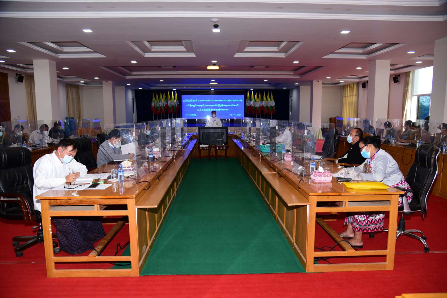 ရှမ်းပြည်နယ် Coronavirus Disease 2019 (ကိုဗစ်-၁၉) ထိန်းချုပ်ရေးနှင့် အရေးပေါ် တုံ့ပြန်ရေး ကော်မတီ လုပ်ငန်းညှိနှိုင်းအစည်းအဝေးကို ယနေ့ နံနက်(၁၀)နာရီက တောင်ကြီးမြို့၊ ရှမ်းပြည်နယ််အစိုးရရုံး အစည်းအဝေးခန်းမ၌ ကျင်းပသည်။