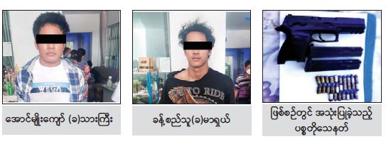 ဖမ်းဆီးရမိ တရားခံများနှင့်အတူ ဖြစ်စဉ်တွင် အသုံးပြုခဲ့သည့် SIG SAUER 9mm ပစ္စတို သေနတ် ၁ လက်၊ ၎င်းကျည် ၂၇ တောင့်၊ ကျည်အိမ် ၂ ခု၊ ဆိုင်ကယ် ၁ စီး၊ ဒီတိုနေတာများ၊ ဆူပူဆန္ဒပြရာတွင်အသုံးပြုသည့် ပစ္စည်းများကိုသိမ်းဆည်းရမိခဲ့သည်။