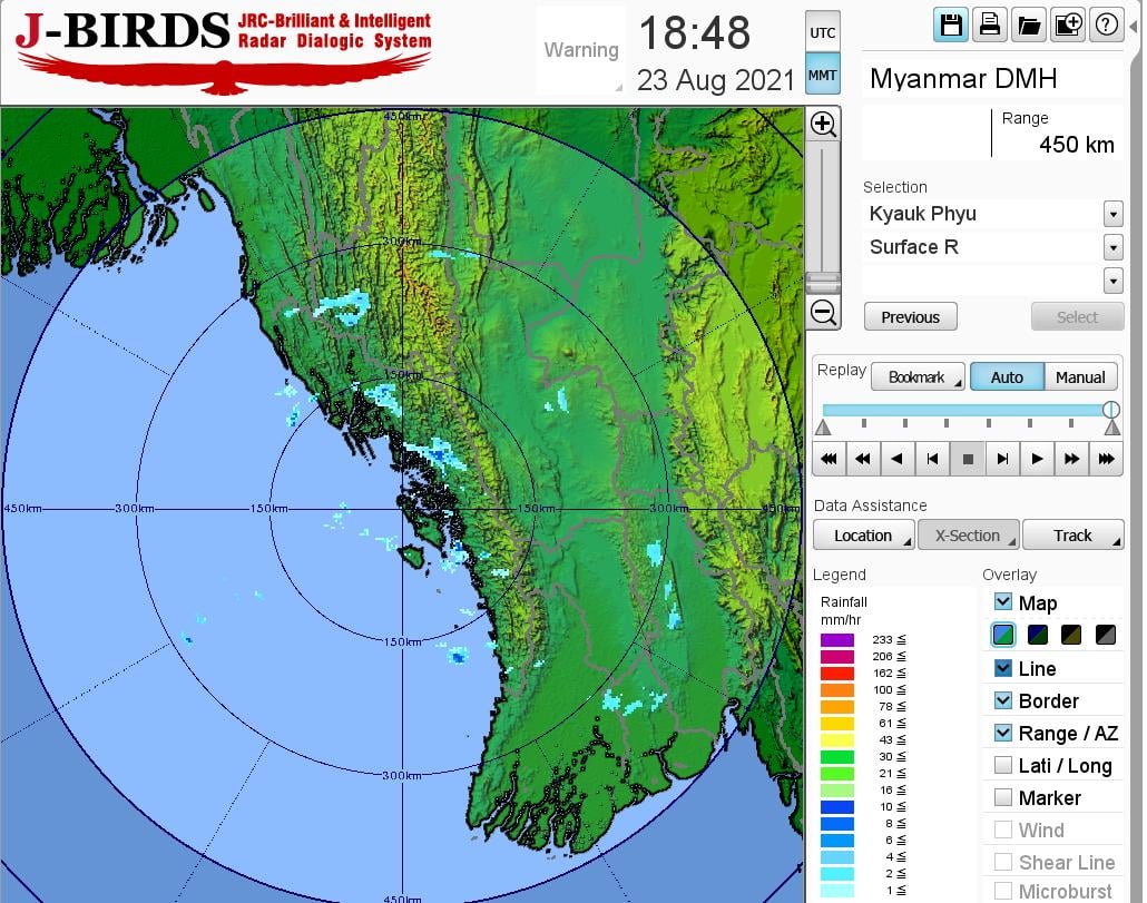 ဘင်္ဂလားပင်လယ်အော်အခြေအနေ။ ကပ္ပလီပင်လယ်ပြင်နှင့် ဘင်္ဂလားပင်လယ်အော်တောင်ပိုင်းတို့တွင် မုတ်သုံလေ အားအနည်းငယ်မှ အားအသင့်အတင့် ရှိနေပြီး၊ ကျန်ဘင်္ဂလားပင်လယ်အော်တွင် မုတ်သုံလေ အားနည်းနေပါသည်။