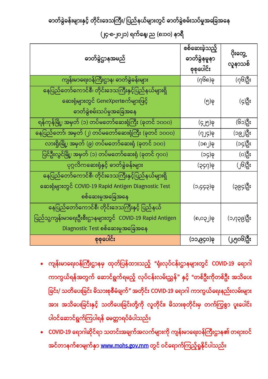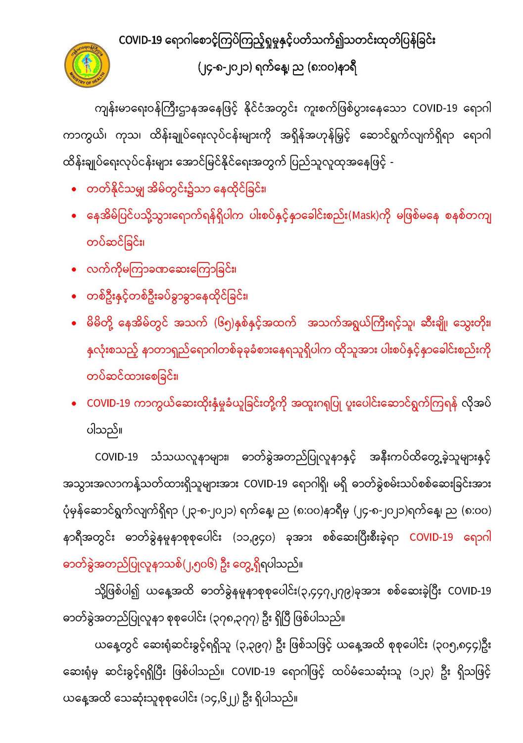 COVID-19 ရောဂါစောင့်ကြပ်ကြည့်ရှုမှုနှင့်ပတ်သက်၍သတင်းထုတ်ပြန်ခြင်း (၂၄-၈-၂၀၂၁) ရက်နေ့၊ ည (၈:၀၀)နာရီ 08/24/2021