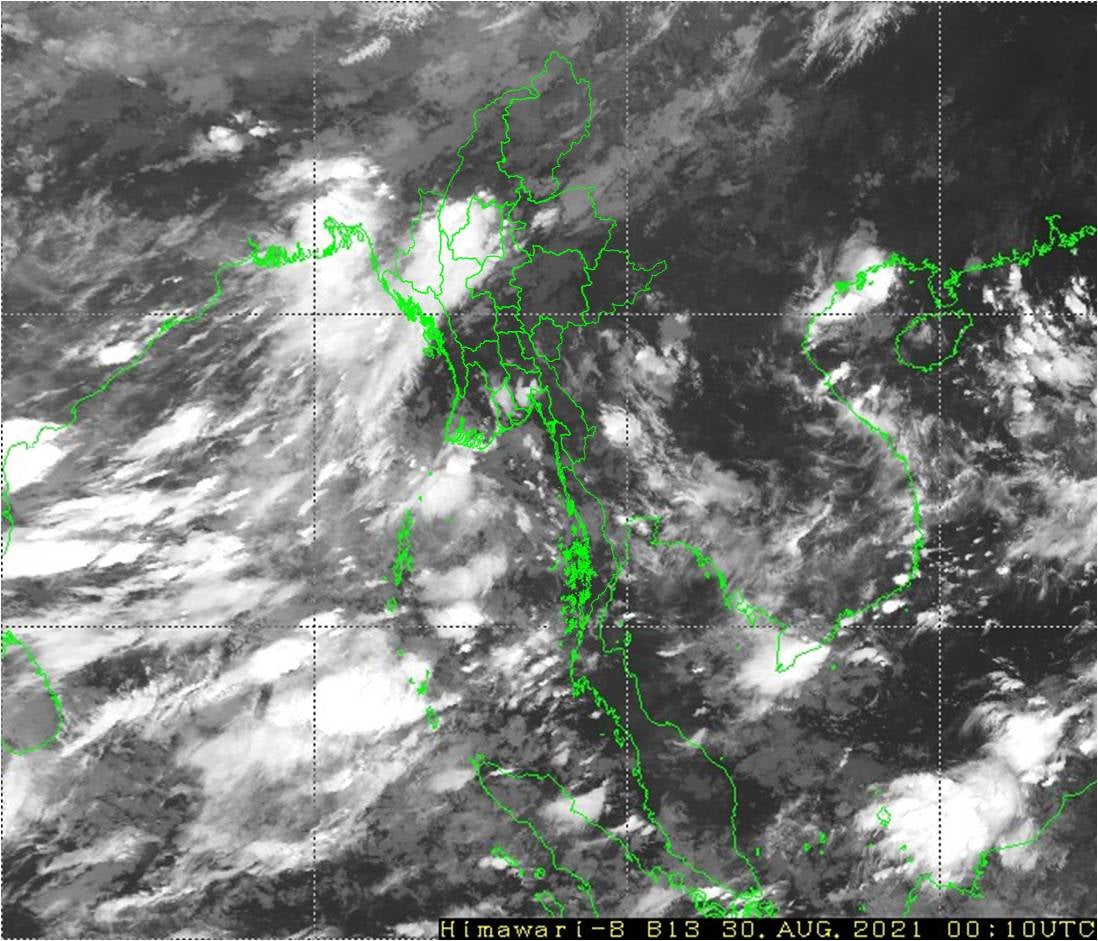 ယနေ့ညနေအထိအထိခန့်မှန်းချက်။ နေပြည်တော်၊ မကွေးတိုင်းဒေသကြီး၊ ကချင်ပြည်နယ်၊ ရှမ်းပြည်နယ်၊ ချင်းပြည်နယ်နှင့် ကယားပြည်နယ်တို့တွင် နေရာစိပ်စိပ်နှင့် ကျန်တိုင်းဒေသကြီး နှင့် ပြည်နယ်တို့တွင် နေရာအနှံ့အပြား မိုးထစ်ချုန်းရွာပြီး၊ စစ်ကိုင်းတိုင်းဒေသကြီးအောက်ပိုင်း၊ မန္တလေးတိုင်းဒေသကြီးနှင့် မကွေးတိုင်းဒေသကြီးတို့တွင် နေရာကွက်၍ မိုးကြီးနိုင်ပါသည်။ ရွာရန်ရာနှုန်းပြည့် ဖြစ်ပါသည်။