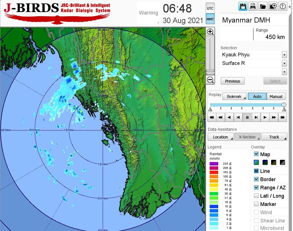 ဘင်္ဂလားပင်လယ်အော်အခြေအနေ။ ကပ္ပလီပင်လယ်ပြင်နှင့် ဘင်္ဂလားပင်လယ်အော်တို့တွင် မုတ်သုံလေ အားနည်းနေပါသည်။