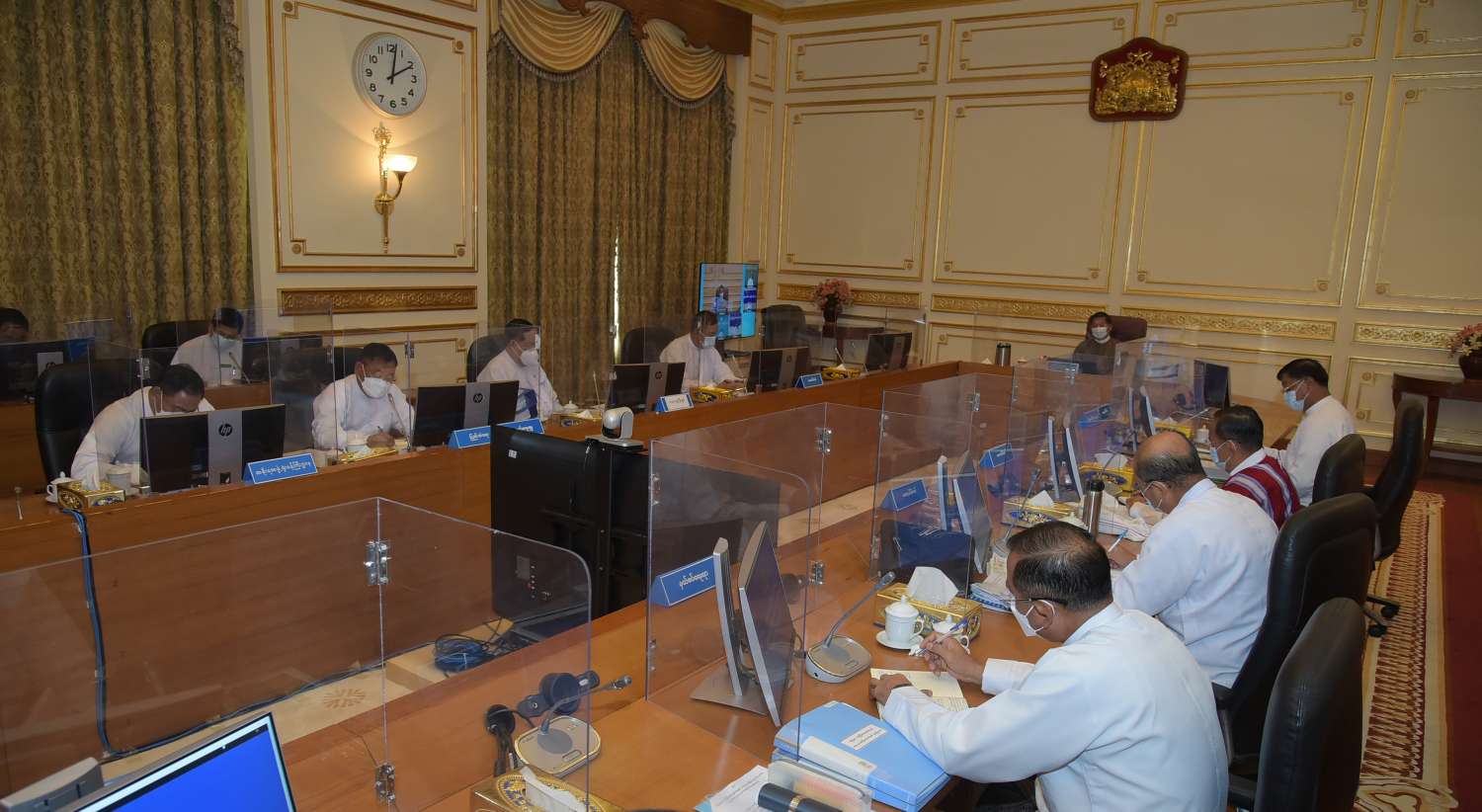 အစည်းအဝေးသို့ နိုင်ငံတော်စီမံအုပ်ချုပ်ရေးကောင်စီဝင်များဖြစ်ကြသည့် ဗိုလ်ချုပ်ကြီး တင်အောင်စန်း၊ ဗိုလ်ချုပ်ကြီး မောင်မောင်ကျော်၊ မန်းငြိမ်းမောင်၊ Jeng Phang နော်တောင်၊ ဒုတိယဗိုလ်ချုပ်ကြီးစိုးထွဋ်၊ ပြည်ထောင်စုတရားသူကြီးချုပ် ဦးထွန်းထွန်းဦး၊ ပြည်ထောင်စု ဝန်ကြီးများဖြစ်ကြသည့် ဒုတိယဗိုလ်ချုပ်ကြီးရာပြည့်၊ ဒုတိယဗိုလ်ချုပ်ကြီး ထွန်းထွန်းနောင်၊ ဦးကိုကို၊ ဦးတင်ထွဋ်ဦး၊ ဦးခင်မောင်ရီ၊ ဦးခင်ရီ၊ ဦးမြင့်ကြိုင်၊ ဒေါက်တာပွင့်ဆန်း၊ ဒေါက်တာသက်ခိုင်ဝင်း၊ ဦးရွှေလေး၊ ဒေါက်တာ သက်သက်ခိုင်၊ ဒေါက်တာ ဒေါ်သီတာဦးနှင့် ဒုတိယဝန်ကြီးများ တက်ရောက်ကြပြီး ချင်းပြည်နယ် အစိုးရအဖွဲ့ဝန်ကြီးချုပ် ဦးငွန်ဆန်းအောင်၊ တနင်္သာရီတိုင်းဒေသကြီး အစိုးရအဖွဲ့ ဝန်ကြီးချုပ် ဦးမြတ်ကို၊ မန္တလေးတိုင်းဒေသကြီးအစိုး ရအဖွဲ့ဝန်ကြီးချုပ် ဦးမောင်ကို၊ ရခိုင်ပြည်နယ်အစိုးရအဖွဲ့ ဝန်ကြီးချုပ် ဒေါက်တာအောင် ကျော်မင်း၊ ရှမ်း ပြည်နယ် အစိုးရအဖွဲ့ဝန်ကြီးချုပ် ဒေါက်တာ ကျော်ထွန်းတို့က Video Conferencing ဖြင့် တက်ရောက်ကြသည်။