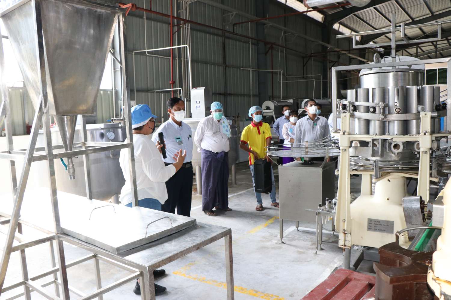 ရှေးဦးစွာ ပြည်ထောင်စုဝန်ကြီးနှင့်အဖွဲ့သည် နေပြည်တော်ကောင်စီနယ်မြေ၊ ဒက္ခိဏသီရိမြို့နယ်ရှိ မြန်မာရွှေသစ်သီးဝလံကုမ္ပဏီလီမိတက် (Myanmar Golden Produce Co.,ltd) ပိုင် သစ်သီးဝလံများ တန်ဖိုးမြှင့်ထုတ်ကုန်ပြုလုပ်သည့်စက်ရုံသို့ ရောက်ရှိရာ Managing Director မှ လုပ်ငန်းဆောင်ရွက်နေမှု အခြေအနေနှင့်၊ လုပ်ငန်းလိုအပ်ချက်များကို တင်ပြရာ ပြည်ထောင်စုဝန်ကြီး က စက်ရုံသို့သွင်းလာသည့် သရက်စိုက်တောင်သူ သမဝါယမအသင်းများမှ စိန်တလုံးသရက်သီးအား လက်ခံဆောင်ရွက်သည့်အတွက် စက်ရုံသာမက သမဝါယမအသင်းသား သရက်စိုက်တောင်သူများပါ အကျိုးဖြစ်ထွန်းနိုင်ကြောင်း၊ သရက်ခွံစွန့်ပစ်များမှ တိရိစ္ဆာန်အစာထုတ်လုပ်နေမှုကို တိုးချဲ့ဆောင်ရွက်နိုင်ပါက သရက်စိုက်တောင်သူများ၏ ဈေးကွက်ပိုမိုရရှိနိုင်ကြောင်း၊ နောင်နှစ်များတွင်လည်း ယခုထက်မက ပိုမိုလက်ခံဆောင်ရွက်နိုင်မည့် အစီအစဉ်များနှင့် စက်ရုံအတွက် လိုအပ်သည့် အရင်းအနှီးချေးငွေများအား အတိုးနှုန်း သက်သာစွာဖြင့် ချေးပေးနိုင်ရေး ညှိနှိုင်းဆောင်ရွက်ပေးမည်ဖြစ်ကြောင်း ပြောကြားပြီး သစ်သီးဝလံများ တန်ဖိုးမြှင့်ထုတ်ကုန်ပြုလုပ်သည့် စက်ရုံအတွင်း လှည့်လည်ကြည့်ရှု လေ့လာ ကြသည်။