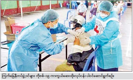 မြန်မာနိုင်ငံတစ်ဝန်း ကိုဗစ်-၁၉ ကပ်ရောဂါဆိုး စတင်ကူးစက်ခံရချိန် ၂၀၂၀ ပြည့်နှစ် မတ်လမှ စ၍ ယနေ့အချိန်ထိတိုင် နေပြည်တော်၊ ပြည်နယ်၊ တိုင်းဒေသကြီးနှင့် ခရိုင်အသီးသီးမှ ကြက်ခြေနီ ကြီးကြပ်မှုကော်မတီများ၊ မြို့နယ်ကြက်ခြေနီအသင်းခွဲများ၊ အသင်းခွဲငယ်များနှင့် ကြက်ခြေနီတပ်ဖွဲ့ဝင် စေတနာလုပ်အားရှင်များသည် သက်ဆိုင်ရာဒေသ အလိုက် ရောဂါကာကွယ်ရေးဆိုင်ရာ လုပ်ငန်းများတွင် ကိုယ်စွမ်းဉာဏ်စွမ်းရှိသမျှ အရှိန်အဟုန်မပျက် နေ့ရောညပါ ကျန်းမာရေးစောင့်ရှောက်မှုပေးခြင်း၊ စိတ်ပိုင်းဆိုင်ရာ အားပေးကူညီခြင်း၊ အောက်ဆီဂျင် အချိန်မီရရှိအောင် ဆောင်ရွက်ပေးခြင်း၊ ဆေးရုံများသို့ ညွှန်းပို့ပေးခြင်း စသည်တို့ကို တက်ကြွစွာပါဝင် ဆောင်ရွက်ပေးလျက်ရှိသည်ကို တွေ့မြင်သိရှိရသည်။