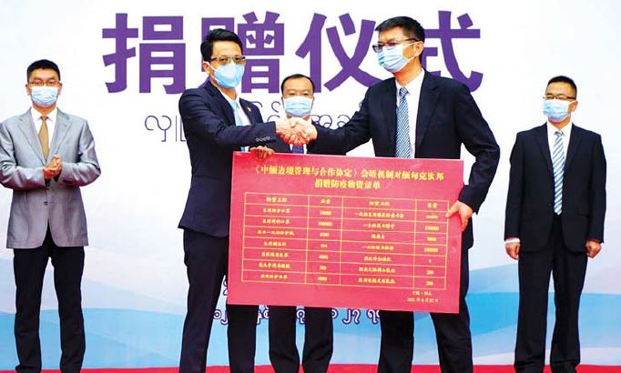 ကိုဗစ်-၁၉ ရောဂါ ကူးစက်ပြန့်ပွားမှု ကာကွယ်တိုက်ဖျက်ရာ၌ အထောက်အကူဖြစ်စေရန် တရုတ် ပြည်သူ့သမ္မတနိုင်ငံ ယူနန်ပြည်နယ် ပြည်သူ့အစိုးရ နိုင်ငံခြားရေးရုံးက မြန်မာနိုင်ငံကချင်ပြည်နယ်အစိုးရသို့ လှူဒါန်းသည့် တရုတ်ယွမ်ငွေ ၁ ဒသမ ၅၅ သန်း တန်ဖိုးရှိ ကိုဗစ်-၁၉ ရောဂါ ထိန်းချုပ်ကုသရေး အထောက်အကူပြုပစ္စည်းများ လွှဲပြောင်းပေးအပ်ပွဲ အခမ်းအနားကို ဩဂုတ် ၂၇ ရက်တွင် ယူနန်ပြည်နယ် ပေါင်စန်းပြည်နယ်ခွဲ ထိန်ချုံးမြို့၌ ကျင်းပခဲ့ရာ ယူနန် ပြည်နယ် ပြည်သူ့အစိုးရ နိုင်ငံခြားရေးရုံး ဒုတိယ ညွှန်ကြားရေးမှူးချုပ် Mr. Wang Wei က လှူဒါန်းသည့် ပစ္စည်းများကို လွှဲပြောင်းပေးအပ်ခဲ့ပြီး မြန်မာနိုင်ငံကိုယ်စား ကူမင်းမြို့ မြန်မာကောင်စစ်ဝန်ချုပ်ရုံး ကောင်စစ်ဝန်ချုပ် ဦးသော်တာအောင်ကလက်ခံရယူခဲ့သည်။ ထို့အပြင် တရုတ်ပြည်သူ့သမ္မတနိုင်ငံ ယူနန်ပြည်နယ် ပြည်သူ့အစိုးရ နိုင်ငံခြားရေးရုံးက မြန်မာနိုင်ငံ၊ ရှမ်းပြည်နယ်အစိုးရနှင့် ကချင်ပြည်နယ်အစိုးရတို့သို့ လှူဒါန်းသည့် တရုတ်ယွမ်ငွေ ၁ ဒသမ ၅ သန်း တန်ဖိုးရှိ Oxygen Concentrator အလုံး ၆၀၀ အား လွှဲပြောင်းပေးအပ်ပွဲအခမ်းအနားကို သြဂုတ် ၃၀ ရက်တွင် ယူနန်ပြည်နယ် ယိုရှီးမြို့ရှိ CMC စက်ရုံတွင် ကျင်းပခဲ့ရာ ယူနန်ပြည်နယ် ပြည်သူ့အစိုးရ နိုင်ငံခြား ရေးရုံး ဒုတိယညွှန်ကြားရေးမှူးချုပ် Mr. Hao Kun က လှူဒါန်းသည့် ပစ္စည်းများကို လွှဲပြောင်းပေးအပ်ခဲ့ပြီး မြန်မာနိုင်ငံကိုယ်စား ကူမင်းမြို့ မြန်မာကောင်စစ်ဝန်ချုပ်ရုံး ကောင်စစ်ဝန်ချုပ် ဦးသော်တာအောင်က လက်ခံရယူခဲ့သည်။