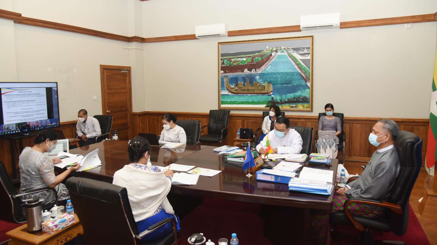 အဆိုပါအစည်းအဝေးတွင် ပြည်ထောင်စုဝန်ကြီးက မြန်မာနိုင်ငံတွင် ကိုဗစ်-၁၉ ကပ်ရောဂါ ကာကွယ်ခြင်းနှင့် ကုသရေးလုပ်ငန်းများ၌ အစိုးရ-ပုဂ္ဂလိက နီးကပ်စွာ ပူးပေါင်းဆောင်ရွက်မှုများ၊ ကူးစက်မှုနှုန်းကို အတိုင်းအတာ တစ်ခုအထိ အောင်မြင်စွာ ထိန်းချုပ်ဆောင်ရွက်နိုင်ခဲ့သည့် အခြေအနေများ၊ ကိုဗစ်-၁၉ ကြောင့် ဖြစ်ပေါ်လာသည့် စီးပွားရေး သက်ရောက်မှုများကို ကုစားနိုင်ရန်အတွက် ကာလလတ်စီမံကိန်းဖြစ်သည့် မြန်မာနိုင်ငံစီးပွားရေး ပြန်လည် ဦးမော့စေရေးစီမံချက်ကို ကုလသမဂ္ဂ၏ထောင်စုနှစ်ရည်မှန်းချက်၊ အာဆီယံဘက်စုံပြန်လည် ထူထောင်ရေး မူဘောင်နှင့် ဂျီအမ်အက်စ်လုပ်ငန်း အစီအစဉ်များနှင့်အညီ ဆောင်ရွက်နေမှုများကို ရှင်းလင်းပြောကြား ခဲ့သည်။