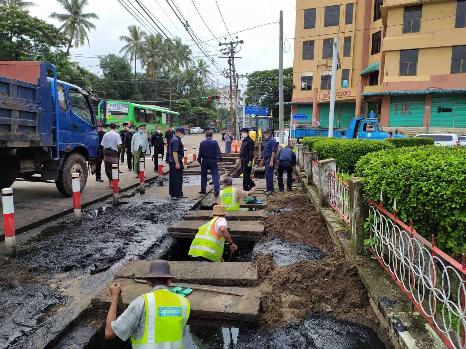 ထို့နောက် မြို့တော်ဝန်နှင့်အဖွဲ့သည် ဗညားဒလလမ်းနှင့် စက်ရုံလမ်း လမ်းဆုံမှ (၁၅)ပေ ခုံးတံတားအောက်ထိ စက်ရုံလမ်း တစ်လျှောက် အရှည်ပေ ၁၅၀၀ ရေမြောင်းများအတွင်း အမှိုက်များနှင့် မြောင်းချေးများ ဆယ်ယူရှင်းလင်းနေမှု၊ စင်္ကြံများ ရေဆေး နေမှုနှင့် လမ်းတစ်လျှောက် သန့်ရှင်းသပ်ရပ်ရေး ဆောင်ရွက်နေမှုအားလည်းကောင်း၊ ဒဂုံမြို့နယ် ရန်ကုန်တိုင်း ဒေသကြီးအစိုးရ အဖွဲ့ရုံး၏ ပြည်လမ်းမျက်နှာစာ ခြုံနွယ်နှင့်မြက်များ ရှင်းလင်းနေမှု၊ မြေယာရှု ခင်းပြုပြင်နေမှုတို့အားလည်းကောင်း ကြည့်ရှုစစ် ဆေးကာလိုအပ်သည်များ ဖြည့်ဆည်းဆောင်ရွက်ပေးသည်။