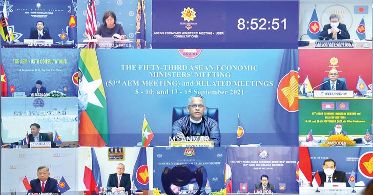 အာဆီယံစီးပွားရေးဝန်ကြီးများနှင့် အမေရိကန် ကုန်သွယ်ရေးကော်မရှင်နာတို့ အစည်းအဝေးတွင် အမေရိကန်နိုင်ငံ ကုန်သွယ်ရေး ကိုယ်စားလှယ် H.E. Katherine Taiနှင့် အာဆီယံ စီးပွားရေးဝန်ကြီးများက အမေရိကန်နိုင်ငံက အာဆီယံအဖွဲ့ဝင်နိုင်ငံများ အတွက် ပံ့ပိုးပေးလျက်ရှိသည့် နည်းပညာဆိုင်ရာ အကူအညီများအပေါ် အမြင်ချင်းဖလှယ်ဆွေးနွေးခဲ့သည်။ အစည်းအဝေးတွင် အာဆီယံ-အမေရိကန် စီးပွားရေးဝန်ကြီးများက အာဆီယံ-အမေရိကန် ကုန်သွယ်မှုနှင့် ရင်းနှီးမြှုပ်နှံမှုမူဘောင် ၂၀၂၁-၂၀၂၂ ခုနှစ် လုပ်ငန်း အစီအစဉ်ကို အတည်ပြု ခဲ့ကြသည်။