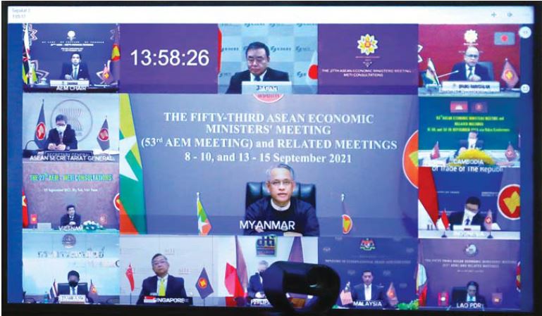 ဆက်လက်၍ (၉)ကြိမ်မြောက် အရှေ့အာရှ စီးပွားရေးဝန်ကြီးများ အစည်းအဝေးကို ကျင်းပခဲ့ရာ အာဆီယံအဖွဲ့ဝင်နိုင်ငံများ၊ အမေရိကန်သြစတြေးလျ၊ တရုတ်၊ အိန္ဒိယ၊ ဂျပန်၊ နယူးဇီလန်၊ ရုရှားနှင့် ကိုရီးယား နိုင်ငံတို့မှ စီးပွားရေးဝန်ကြီးများက ဒေသတွင်းနှင့် နိုင်ငံတကာတွင် ကိုဗစ် -၁၉ ကြောင့် သက်ရောက်မှုများနှင့် အရှေ့အာရှနိုင်ငံများတွင် ကိုဗစ်-၁၉ ကြောင့် သက်ရောက်မှုများ လျှော့ချရေးအစီအမံများနှင့် အရှေ့အာရှနိုင်ငံများတွင် ကိုဗစ်-၁၉ ကပ်ရောဂါ အလွန် ပြန်လည်ထူထောင်မှု လုပ်ငန်းများနှင့်စပ်လျဉ်း Economic Research Institute for ASEAN and East Asia -ERIA က ပြုစုတင်သွင်းသည့် စာတမ်းတို့အပေါ် အမြင်ချင်းဖလှယ် ဆွေးနွေးခဲ့ကြသည်။
