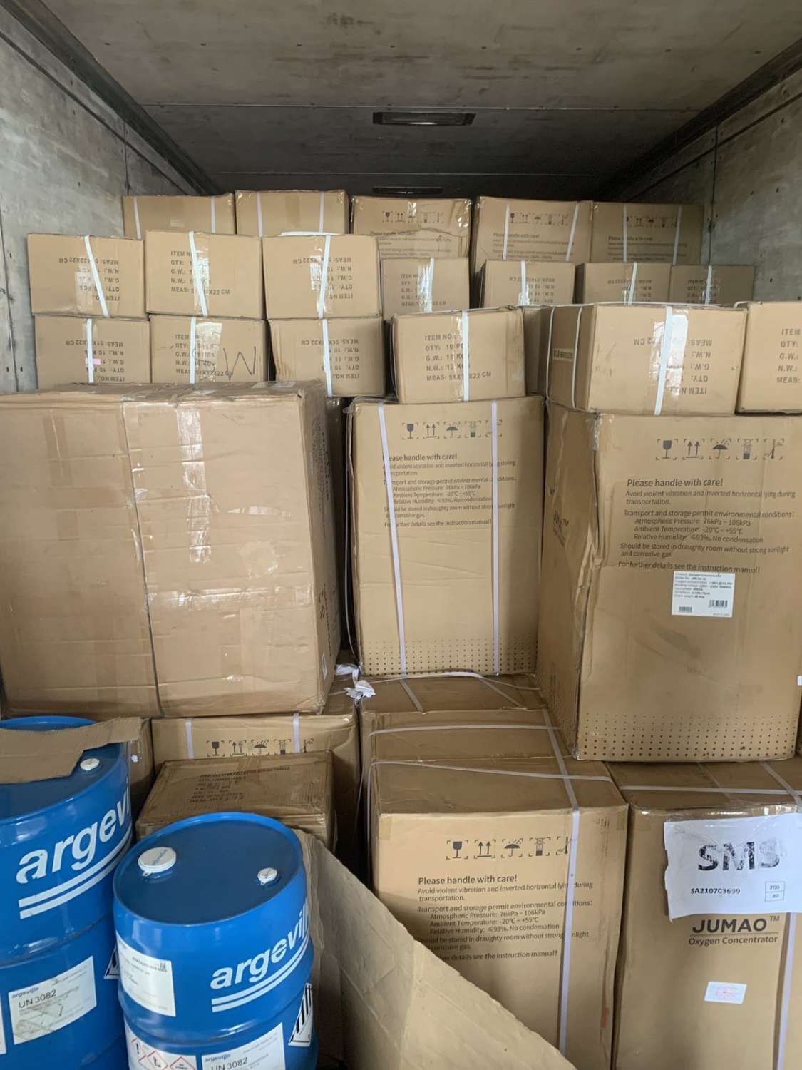 စီးပွားရေးနှင့်ကူးသန်းရောင်းဝယ်ရေးဝန်ကြီးဌာနအနေဖြင့် ကိုဗစ်-၁၉ ရောဂါကာကွယ်၊ ထိန်းချုပ်၊ ကုသရေးဆိုင်ရာပစ္စည်းများကို လေကြောင်း၊ ရေကြောင်းနှင့် နယ်စပ်ကုန်သွယ်ရေးစခန်း များမှ အဆင်ပြေချောမွေ့စွာ တင်သွင်းနိုင်ရေးအတွက် အချိန်နှင့်တပြေးညီ စီစဉ်ဆောင်ရွက်ပေး လျက်ရှိရာ ယနေ့တွင် ရန်ကုန်အပြည်ပြည်ဆိုင်ရာ လေဆိပ် ၊ ဆိပ်ကမ်းများနှင့် မြဝတီ၊ ချင်းရွှေဟော် နယ်စပ်စခန်း(၂)ခုတို့မှ တင်သွင်းရာ၌ ကုမ္ပဏီ (၄) ခုမှ ယာဉ်စီးရေ (၅) စီးဖြင့် အောက်ဆီဂျင် (အိုးခွံ) (၁၀၀၀) ခု၊ Oxygen Plant (၁၅)ခု၊ အိမ်သုံး Oxygen Concentrator (၃၆၇)ခု၊ Covid Test Kit (၁၀၂၆၀) ခု၊ PPE (၁၅၇၁၇၇)စုံ၊ လက်အိတ် (၁၆) တန်နှင့် နှာခေါင်းစည်း (Mask) (၃၂)တန် တင်သွင်းခဲ့ သည်။ Oxygen Plant (၁၅)ခုမှာ ဆိပ်ကမ်းမှ ရန်ကုန်မြို့သို့ (၁၄) ခုနှင့် ချင်းရွှေဟော်မှ မန္တလေးတိုင်း ဒေသကြီး၊ စဉ့်ကူးမြို့သို့ (၁) ခု ဖြစ်ကြောင်း သိရှိရသည်။