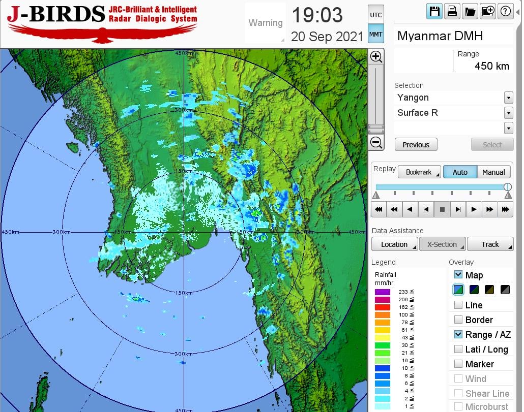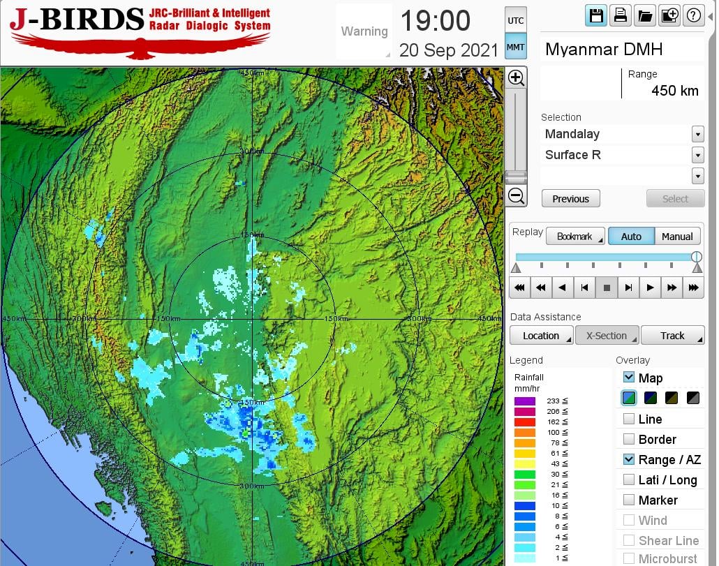 မန္တလေးမြို့နှင့် အနီးတစ်ဝိုက်အတွက် မနက်ဖြန်မွန်းတည့်ချိန်အထိ ခန့်မှန်းချက်။ မိုးတစ်ကြိမ်၊ နှစ်ကြိမ်ထစ်ချုန်းရွာမည်။ ရွာရန်ရာနှုန်းပြည့် ဖြစ်ပါသည်။
