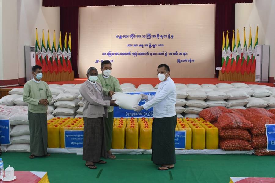 ထို့နောက် ဝန်ကြီးချုပ်နှင့် တိုင်းမှူးတို့က မန္တလေးတိုင်းခရိုင်အတွင်းရှိ ဘာသာရေးအဖွဲ့ ၃၅ ဖွဲ့ အတွက် ဆန် ၃၅၄ အိတ်၊ ဆီ ၇၀၇ ပိဿာ၊ ကုလားပဲ ၇၀၇ ပိဿာနှင့် ကြက်သွန်နီ ၇၀၇ ပိဿာတို့ကို ထောက်ပံ့ပေးအပ်ရာ ဘာသာရေးအသင်း အဖွဲ့များမှ တာဝန်ရှိသူများက လက်ခံရ ယူကြပြီး တာဝန်ရှိသူတစ်ဦးက ကျေးဇူးတင် စကားပြန်လည်ပြောကြားခဲ့ကြောင်း သတင်း ရရှိသည်။