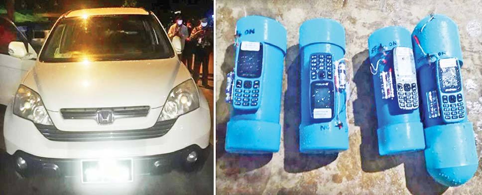 ၂၀၂၁ ခုနှစ်၊ စက်တင်ဘာလ ၅ ရက်တွင် လုံခြုံရေးပူးပေါင်းအဖွဲ့သည် နယ်မြေလှည့်ကင်း ဆောင်ရွက်စဉ် တောင်ဥက္ကလာပမြို့နယ်၊ (၅)ရပ်ကွက်၊ ဗြဟ္မစိုရ် လမ်းနှင့် ပင်းယလမ်းထိပ်၌ ယာဉ်မောင်း ကျော်ကိုလင်း (ခ)AJ (၃၄)နှစ် မောင်းနှင်ပြီး စိုင်းပိုင်စိုးနောင်(ခ)မာဝီ(၃၀)နှစ် လိုက်ပါလာသည့် CRV (အဖြူရောင်) ယာဉ်အား စစ်ဆေးခဲ့ရာ ယာဉ်နောက်ခန်း အတွင်းမှ အပြာရောင် PVC ပိုက်၊ Keypad ဖုန်းတို့ဖြင့် ချိတ်ဆက်ပြုလုပ်ထားသည့် လက်လုပ်ချိန်ကိုက်မိုင်း ၄ လုံးအား သိမ်းဆည်းရမိ ခဲ့ကြောင်း သိရှိရသည်။