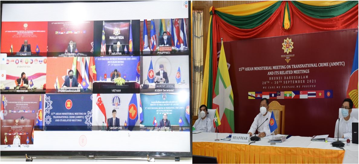 အာဆီယံ၏ နိုင်ငံရေးနှင့်လုံခြုံရေးအသိုက်အဝန်း(APSC) မဏ္ဍိုင်မှ (၁၅) ကြိမ်မြောက် အာဆီယံဝန်ကြီးအဆင့် နိုင်ငံဖြတ်ကျော်မှု ခင်းတိုက်ဖျက်ရေးဆိုင်ရာ အစည်းအဝေး(15th AMMTC) နှင့် ဆက်စပ်အစည်းအဝေးများကို ယနေ့နံနက်ပိုင်းတွင် ဘရူနိုင်းဒါရုဆလမ်နိုင်ငံက ဗီဒီယိုကွန်ဖရင့်စနစ်ဖြင့် အိမ်ရှင်နိုင်ငံအဖြစ် ဦးဆောင်ကျင်းပသည်။
