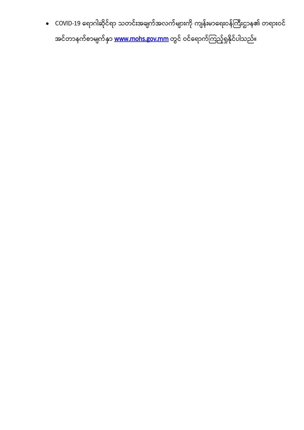 COVID-19 ရောဂါ စောင့်ကြပ်ကြည့်ရှုမှုနှင့်ပတ်သက်၍ သတင်းထုတ်ပြန်ခြင်း