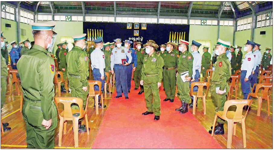ထို့နောက် နိုင်ငံတော်စီမံအုပ်ချုပ်ရေးကောင်စီဥက္ကဋ္ဌ၊ တပ်မတော် ကာကွယ်ရေးဦးစီးချုပ်နှင့် အဖွဲ့ဝင်များသည် သင်တန်းသား အရာရှိကြီးများအား ရင်းရင်းနှီးနှီး လိုက်လံနှုတ်ဆက်ခဲ့ကြောင်း သတင်းရရှိသည်။